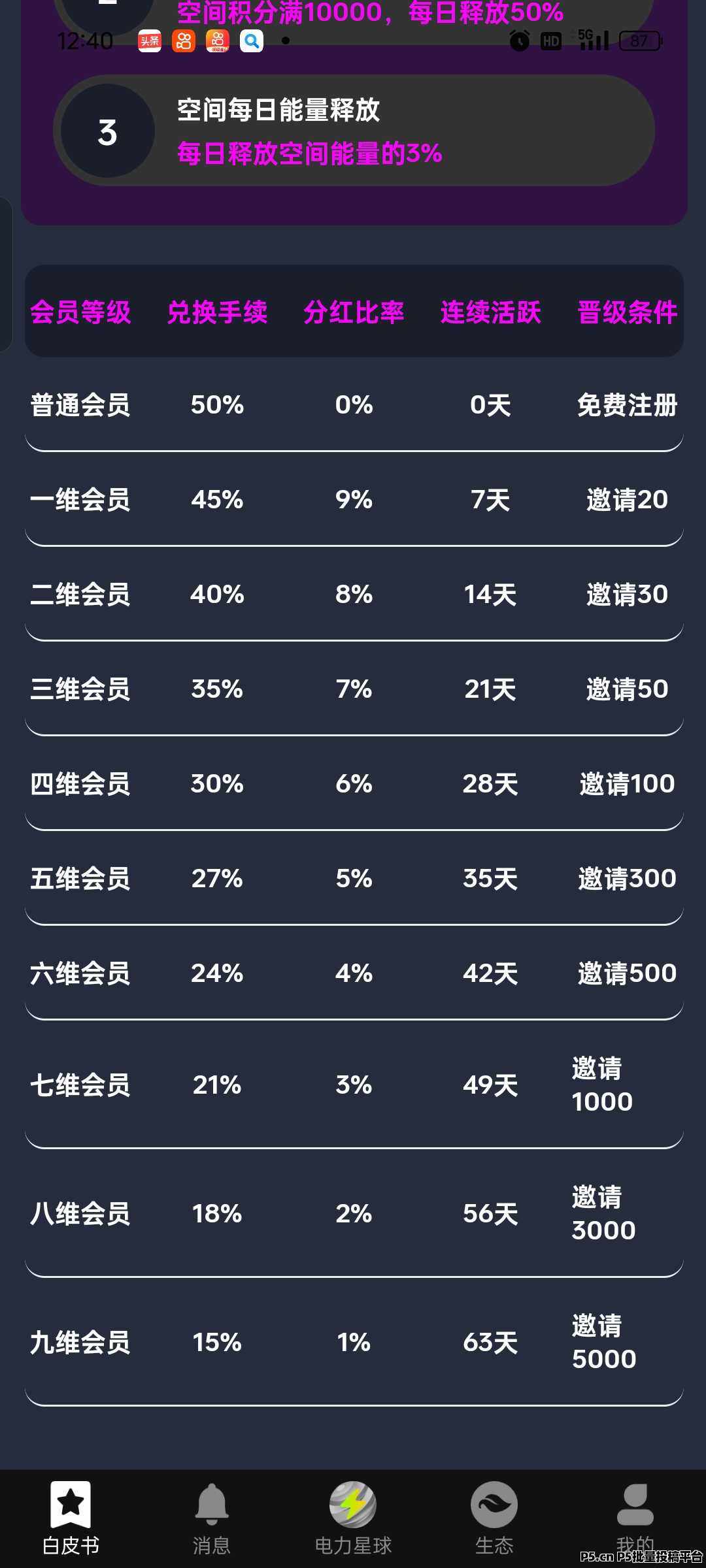 在电力星球中,用户通过看广告任务即可获取每日稳定收溢,并享受九维空间联动收溢,不仅提升了整体产出,还让零撸玩家也能轻松参与。平台还推出星球能量+积分双轨制度,其中星球积分每日固定产出,能量则具备波动升值与转赠功能,用户可在生态内自由流通,实现灵活变现。