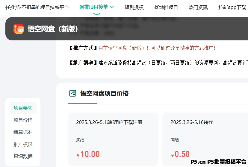 二、悟空网盘拉新怎么算一单(结算标准)、项目价格