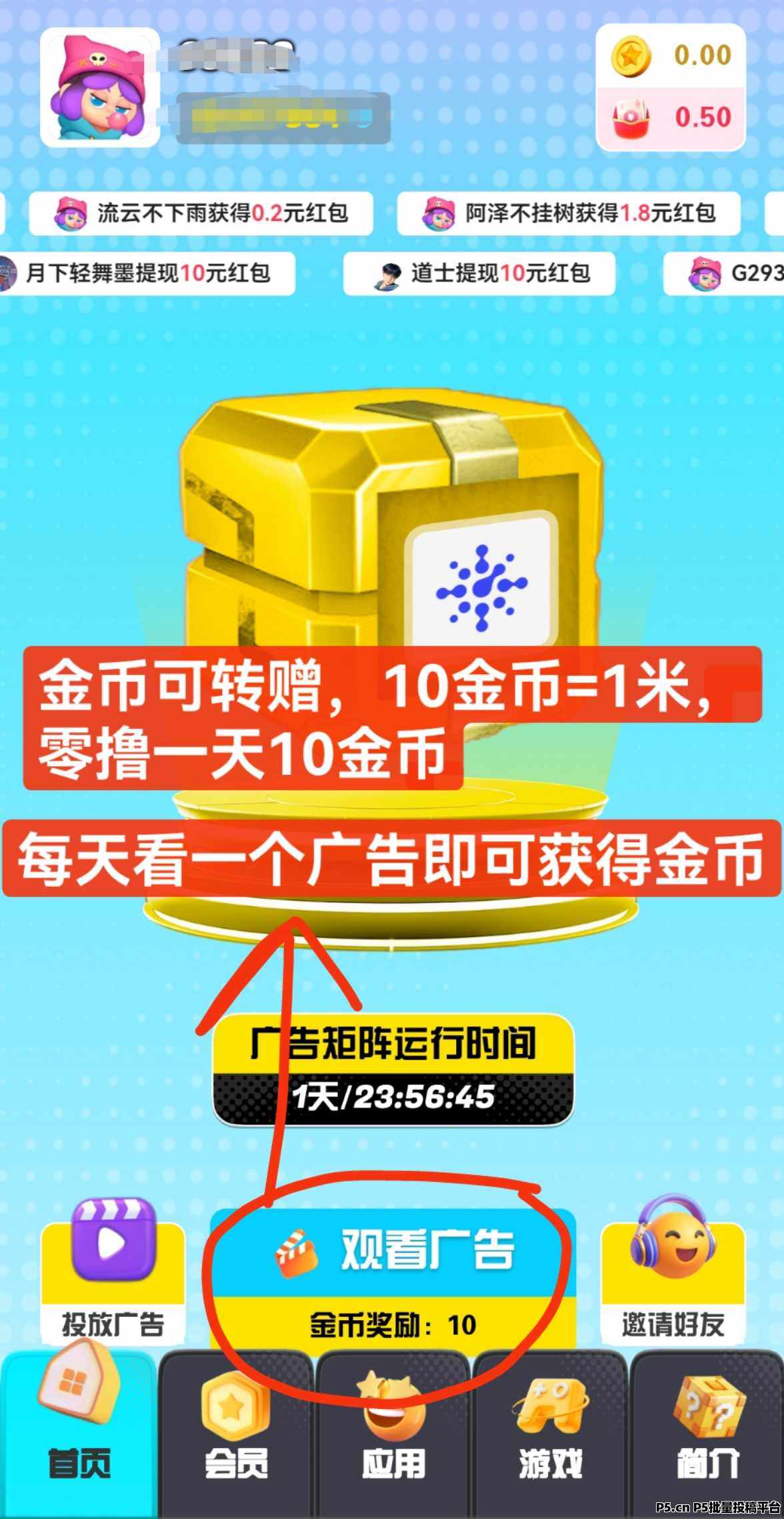 正文 广告联盟,每天仅需观看一个广告,零撸首码 生财有道0002316 V作者 /2025-05-10 22:18:33/1.43 K阅读 0510 广告联盟一一每天仅需看一个广告,零撸日撸1米+,直推收益10%。间推5%,邀请一好友最高奖励0.5-8.8现金红包,间推0.2开会员收益更高,10金币=1米,金币可转赠,直推收益10%。金币包回收,转赠手续费30%,会员10%目前还是内测锁粉,上线会通知,速速上车布局吃肉项目对接加q 211099499