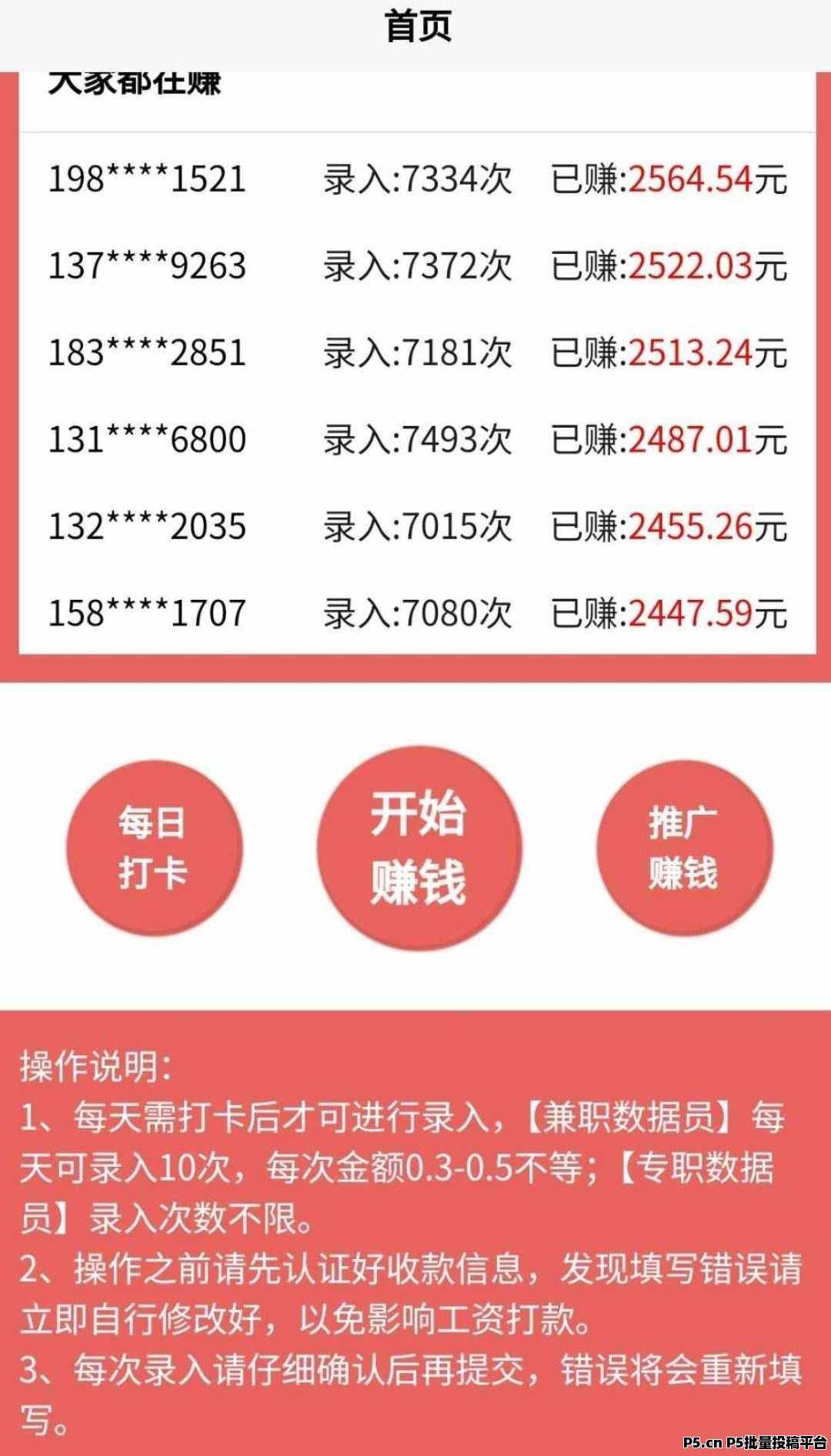 数据录,新平台无套路(打字就能赚钱,零撸)人人可做,每天打字赚钱,每天需打卡后才可进行录入10次,每次金额0.3-0.5不等,每天保底10-50元, 提现稳。已到账上百,推广暴力叠2级收益。