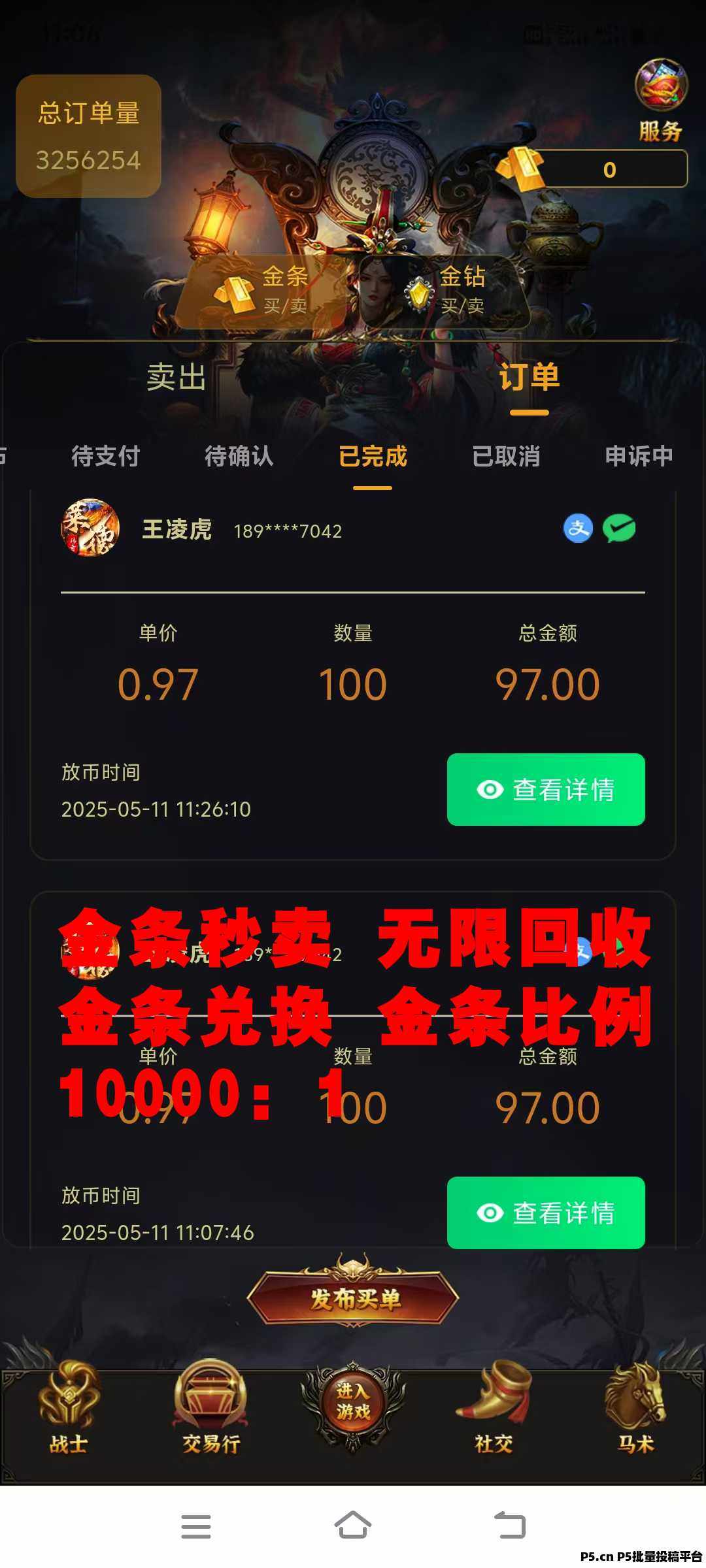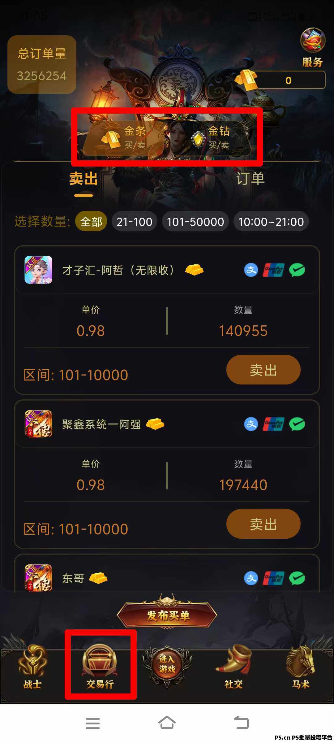 五、交易:钻石价格1:1元 ,金币1万:0.97元