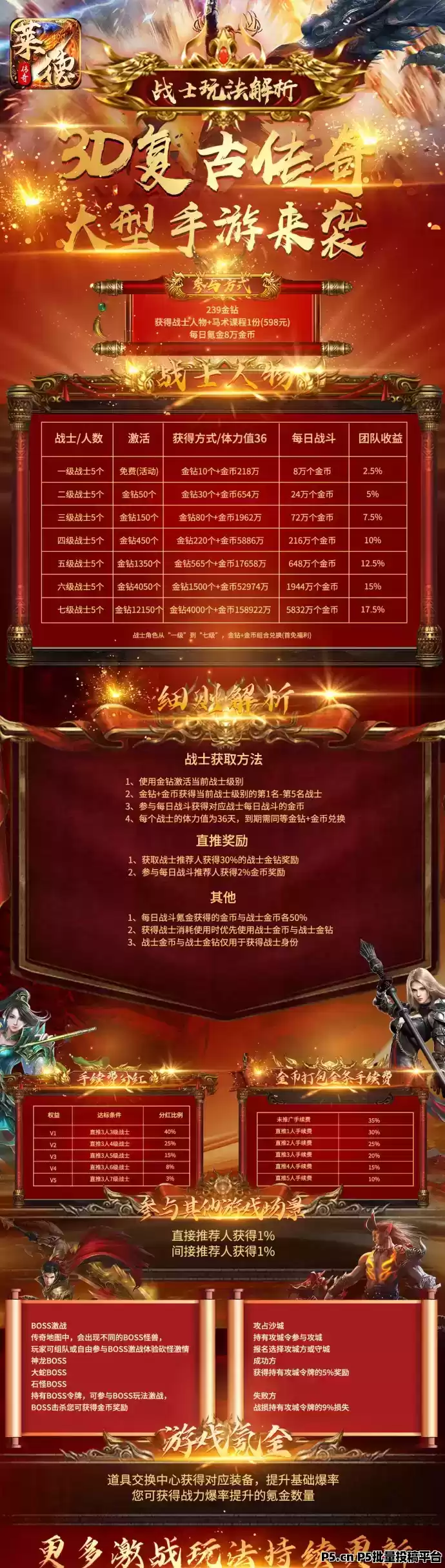 三、直推30%金钻2%金币奖励,手续费35%1人30%2人25%3人20%4人15%5人10%