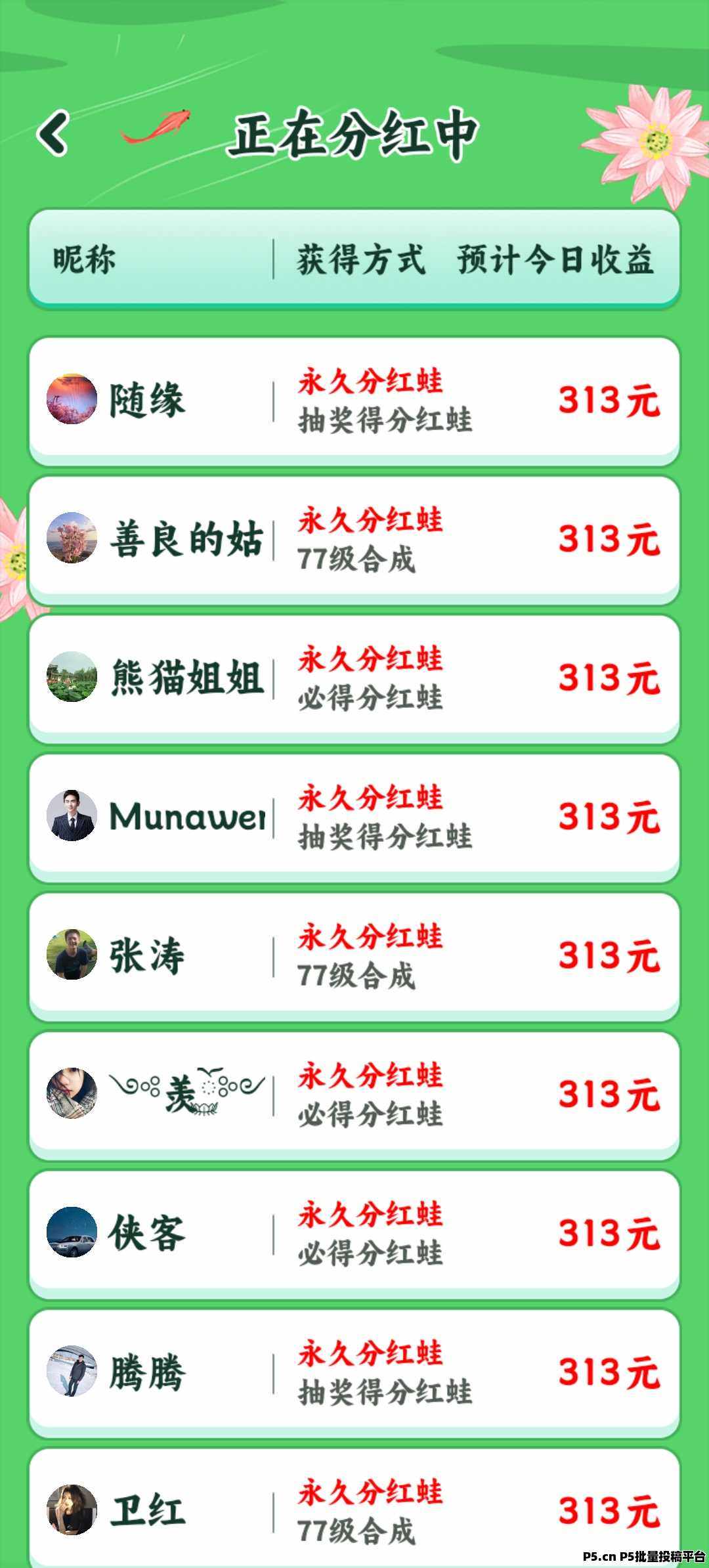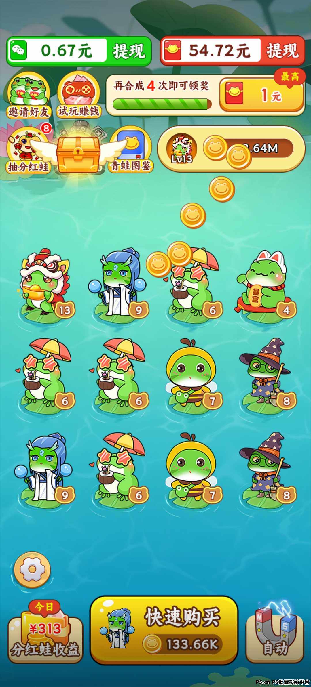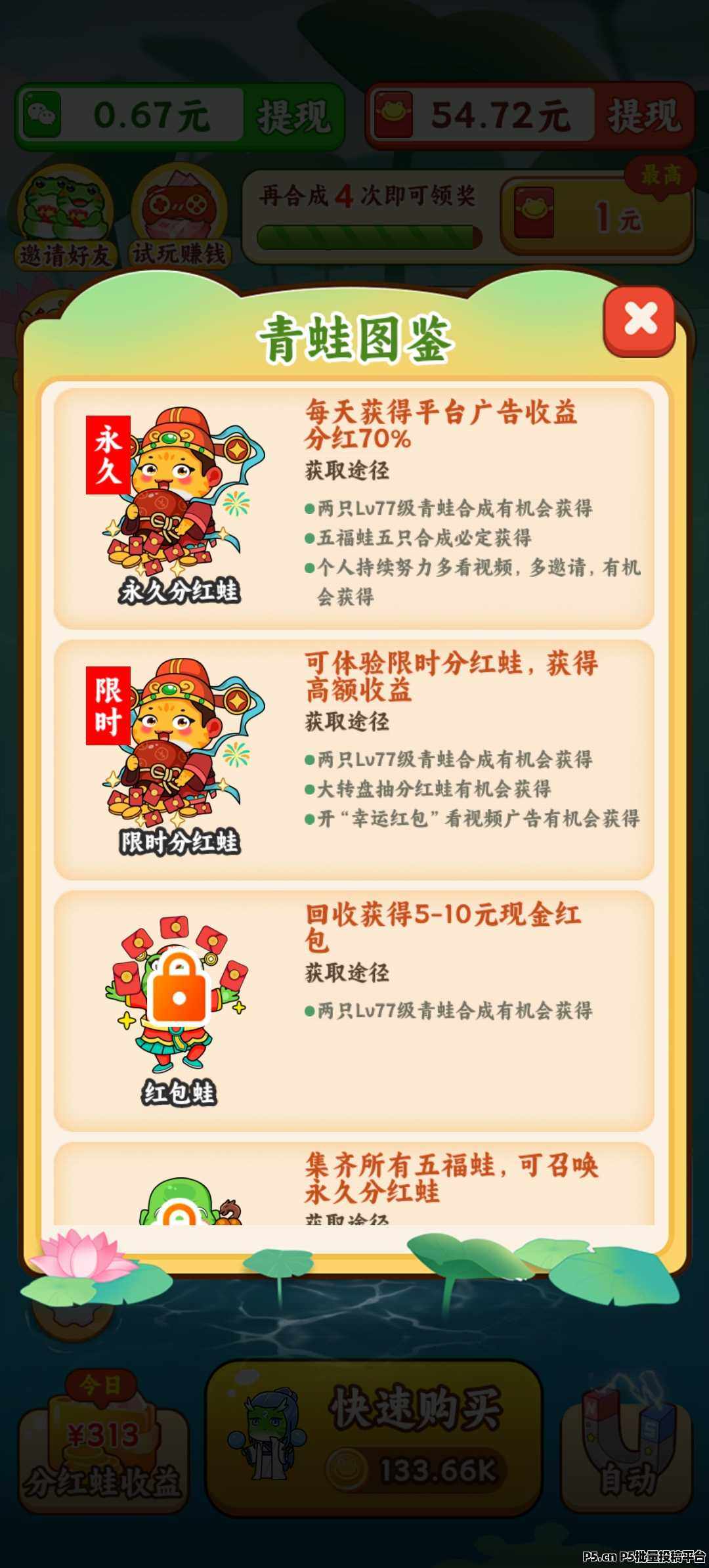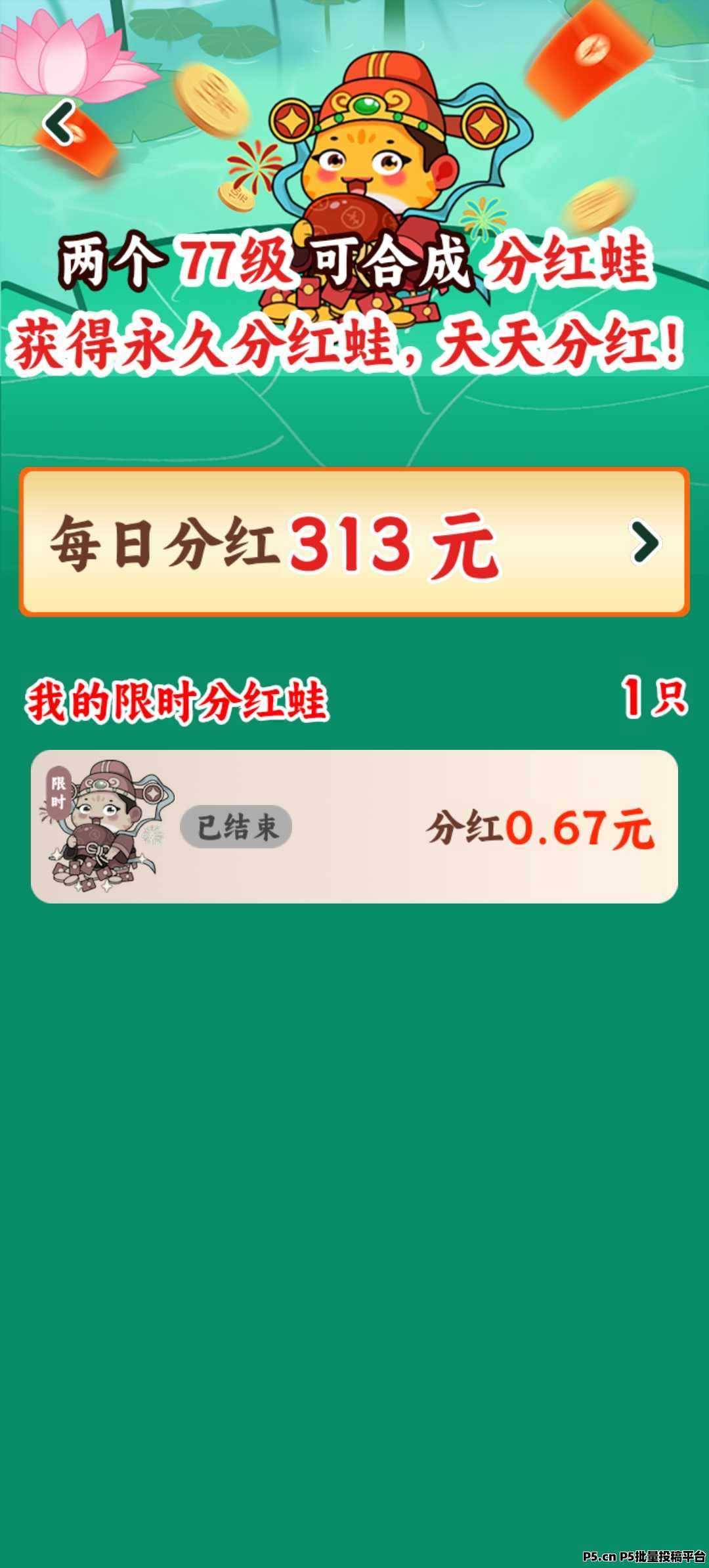 正文 福运小青蛙,合成赚钱游戏,天天** 合成分红0002187 V作者 /2025-06-04 17:32:14/540阅读 0604 赚钱游戏,合成**。 两个77级、合成**蛙 个人努力必得永久**蛙 天天提现313元必填邀请码:J7UPH5