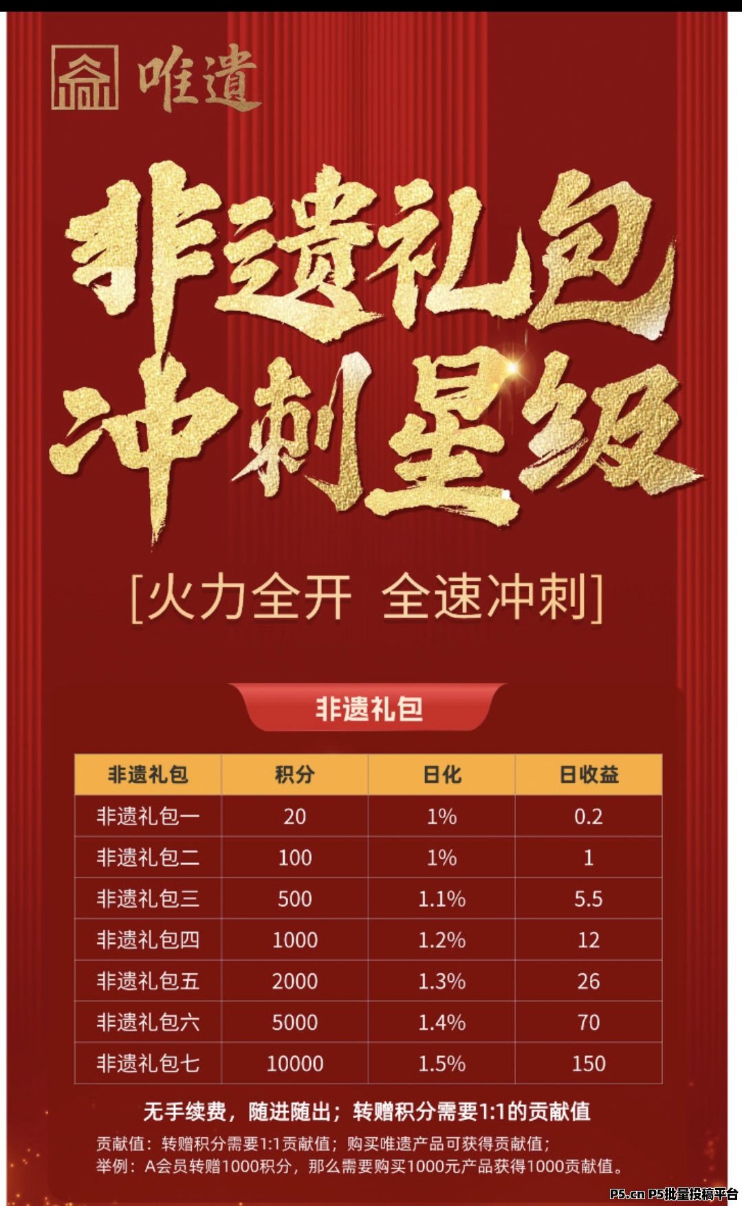 非遗礼包非遗礼包 积分 日化 日收益 非遗礼包一 100 1% 1