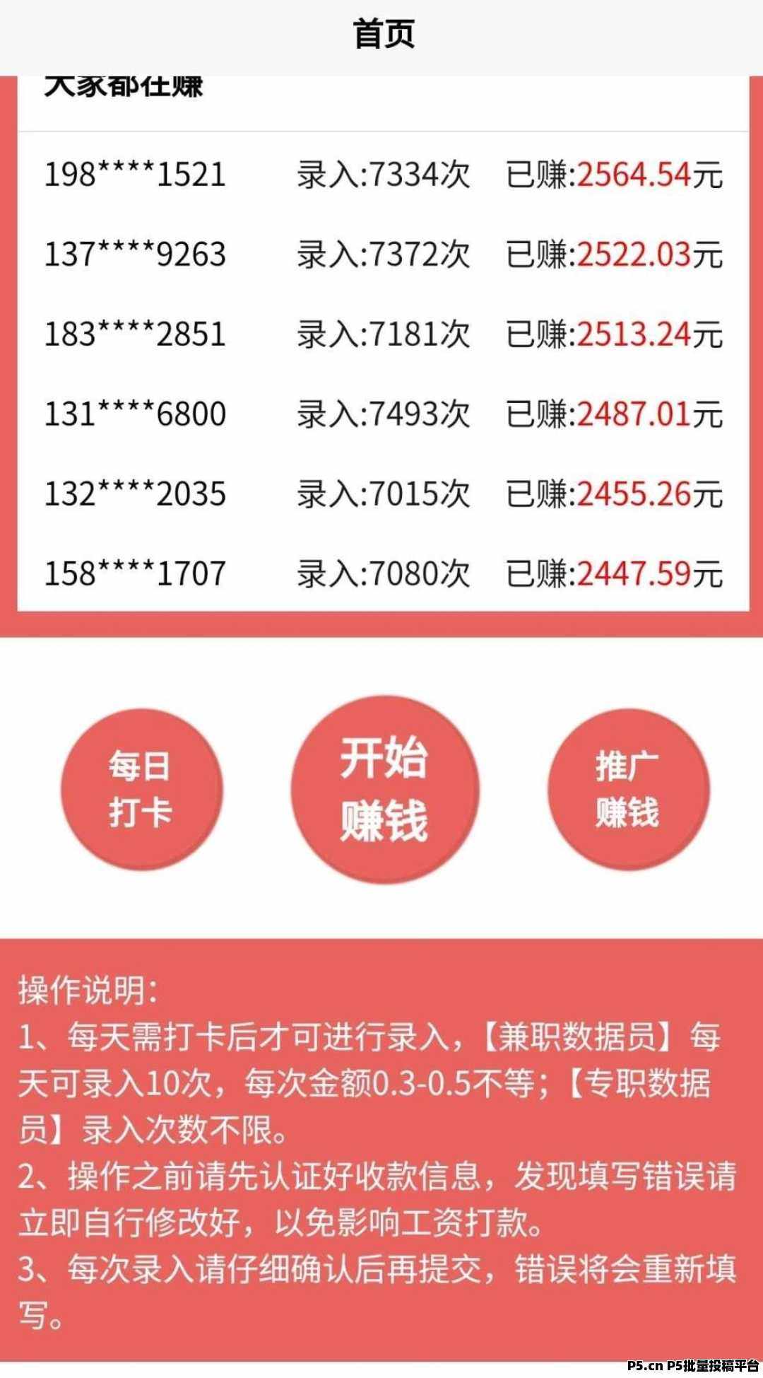 数据录,新平台无套路(打字就能赚钱,零撸)人人可做,每天打字赚钱,每天需打卡后才可进行录入10次,每次金额0.3-0.5不等,每天保底10-50元, 提现稳。已到账上百,推广暴力叠2级收益。