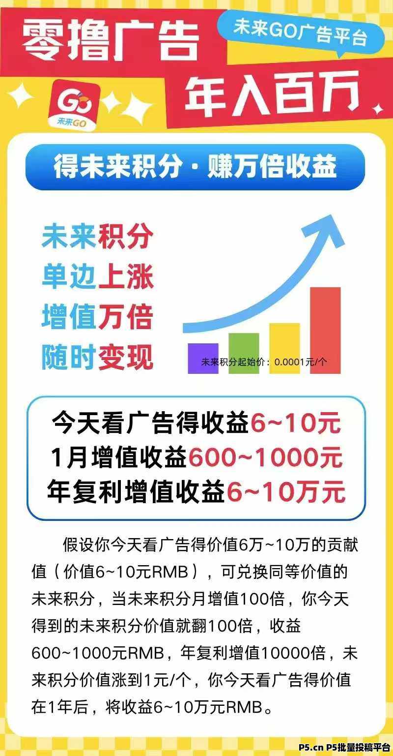 如果你正在寻找一个无需投姿、轻松赚钱的平台,未来GO广告平台无疑值得布局。更多详情可加V信详聊