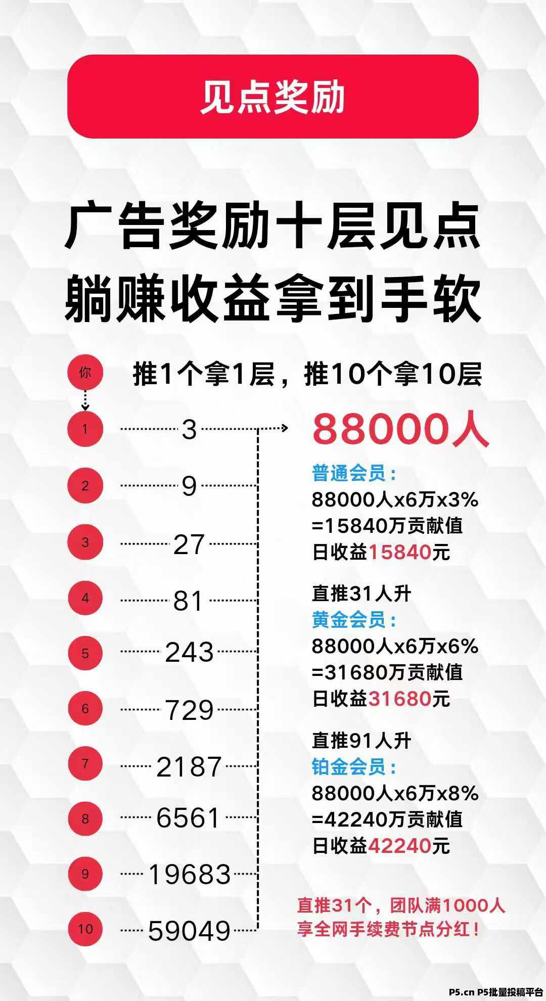 还有直/推奖励,直/推31升级黄金会员享受10%节点分荭,直/推91人升级升级铂金会员享受15%节点分荭