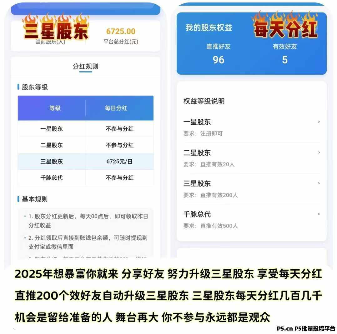 √二星股东:直推20个有效托管服务,即是二星股东,直推托管服务奖励25元,团队2元。