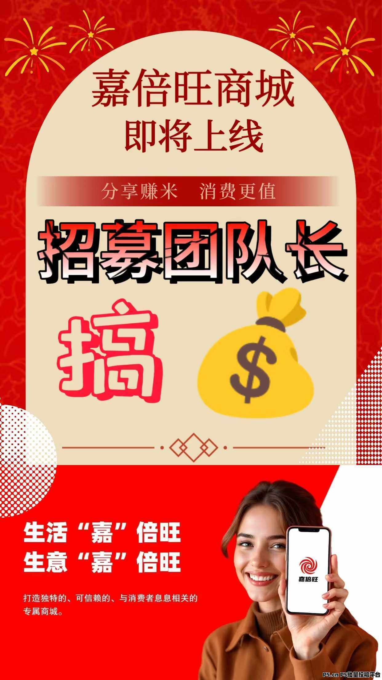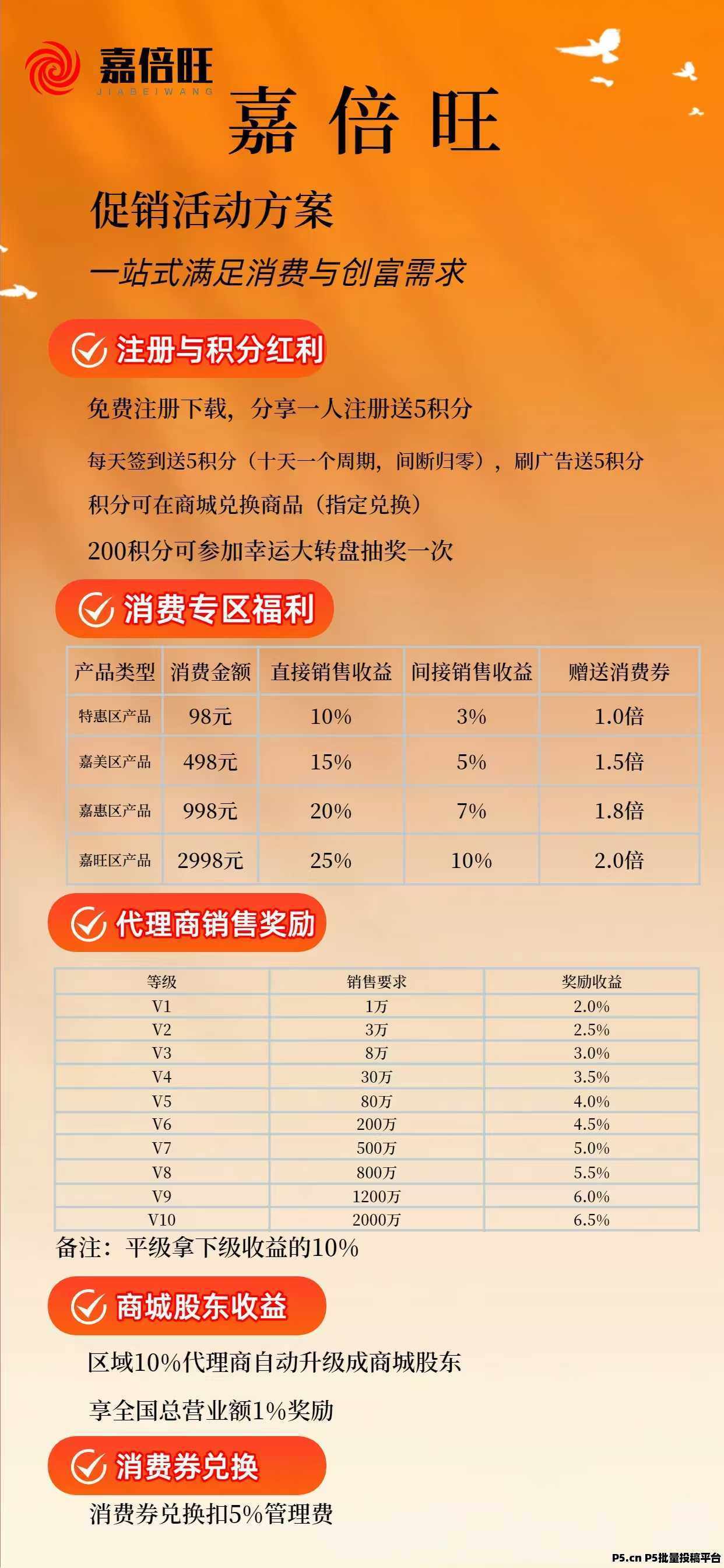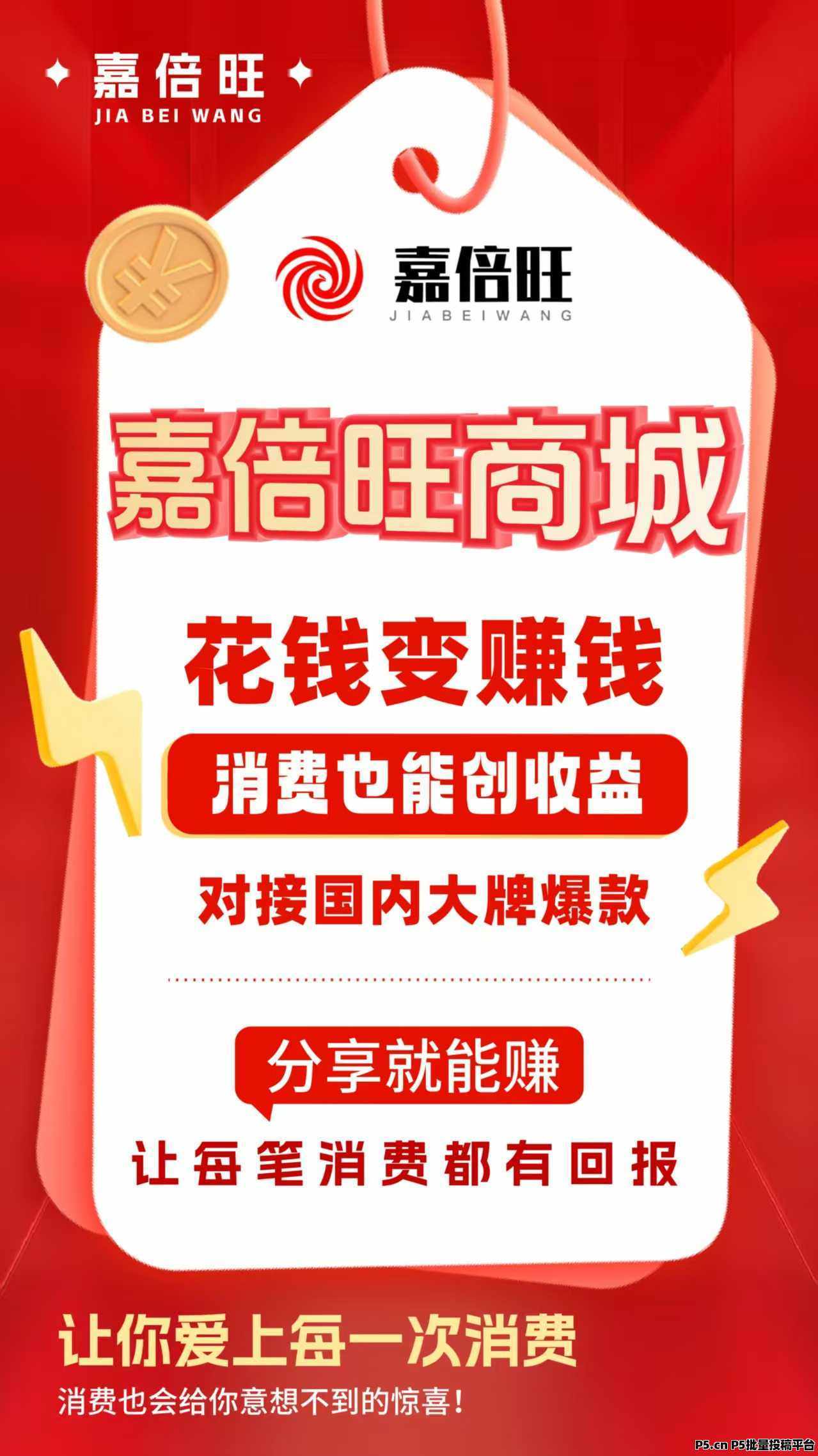 2、嘉倍旺--对接拼多多、淘宝等各大一流平台,一次注册终生锁定🔐,商家返利,用户消费,推荐人终生拿奖励。