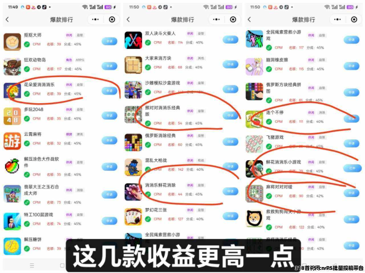 1 申请6款广告类型的小游戏,每个游戏看10个左右广告,中间最好点击其中一个广告的内容进去看详情(提高转化率)