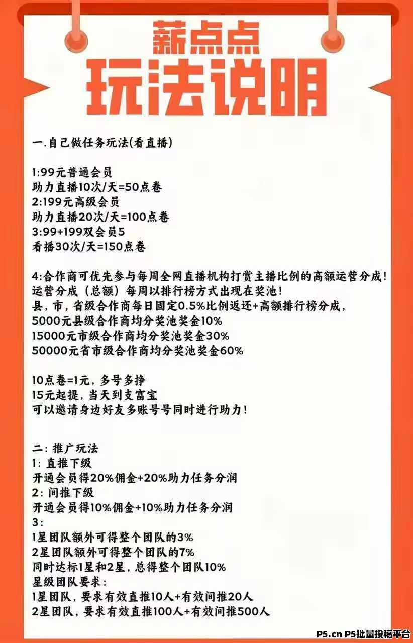 (每天助力直播):会员单号日最高收益15元,多号多赚
