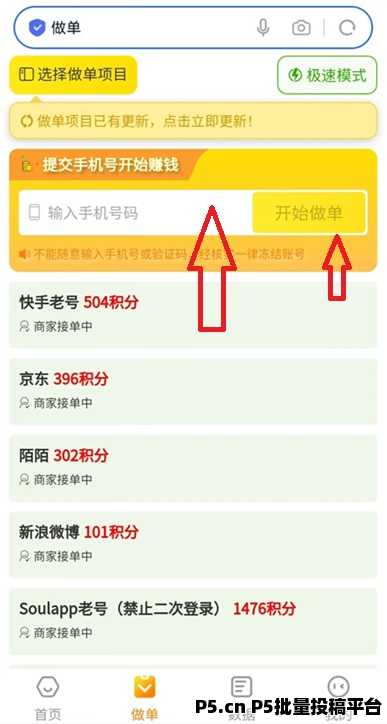 输入手机号,点击开始做单,手机收到验证码、上传验证码到对应的项目,最后提交,然后等待商家确认,佣金到账,步骤很简单,所以大大提高了推手的操作速度,不管是新手老手都能有不错的收入,商场周围,老年人活动中心周围等,都是适合的地推地点,因为老年机基本什么**都没注册过,所以可以获得单号最高收益。