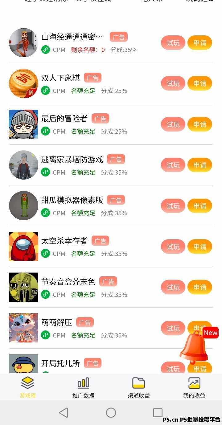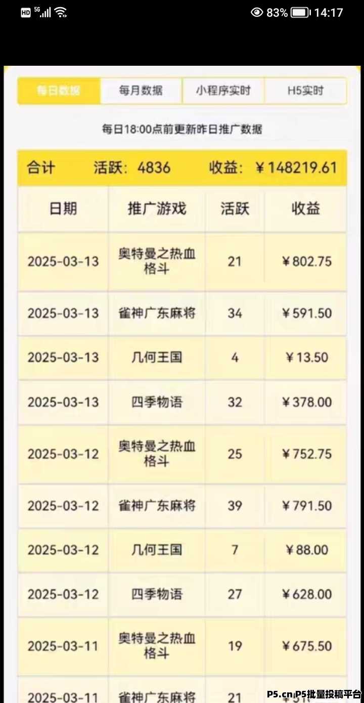 - 游戏流水:推广平台内《****》《天下策》等折扣手游,玩家充值你拿提成,0.1折游戏自带高转化,每单收益直接到账。
