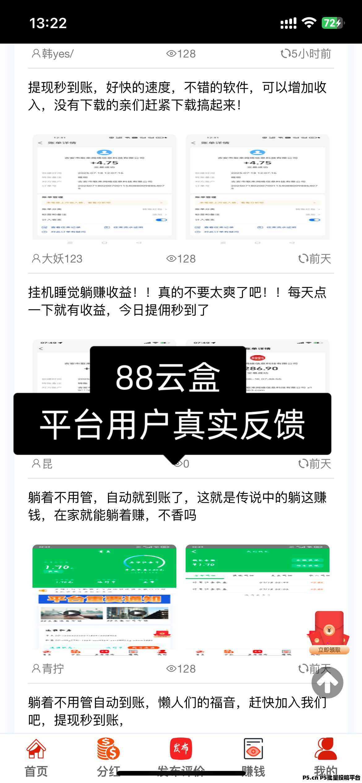 加入88云盒,来者人人赚钱,只需手机打开数据或wiff开启远程连接云盒,自动赚钱,收入满5即可提现。