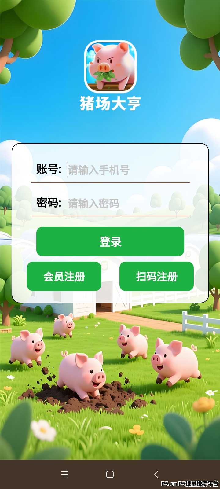 养猪大享app是一款手机趣味养殖游戏,注册赠送价值666元普通猪崽一只,每天收益一元。 成为猪场财主,每天收益20元,邀请一位好友加入养殖奖励5元/位以及养殖分成,上不封顶,快来试试吧!