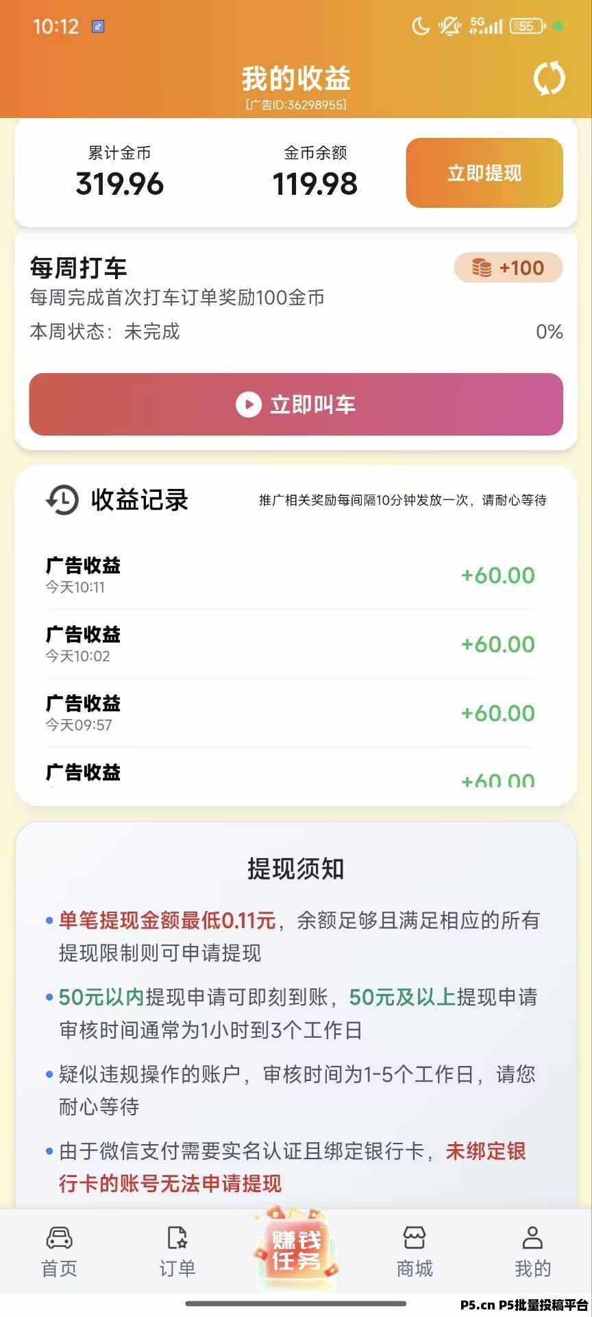 正文 滴选出行,史上最强零撸,不养机 wen6299912900003154 V作者 /2025-10-14 17:31:36/58阅读 1014 滴选出行最强0撸:看1个广告即可提现秒到绿泡泡单号 一天能赚20多米单广0.6米,100金币=1米不实名1号1微信即可,多号多做