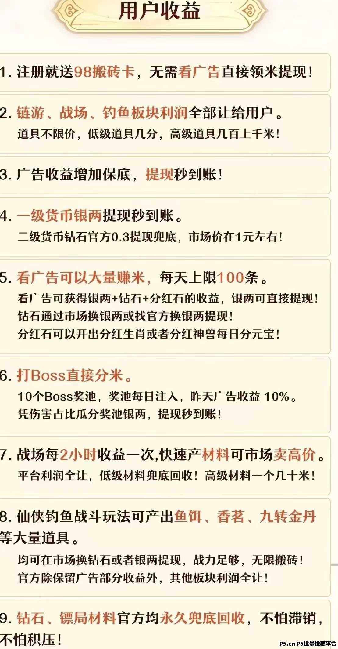 正文 仙侠时代,今日正式上线高光零撸 a18470225200001422 V作者 /2025-10-15 21:55:14/64阅读 1015 —正式上线,仙侠时代首码,属微光盒子二台,广告+链游模式,新用户注册送98搬砖卡,每天上限100个广告可得银两+钻石+芬红石奖励,切换不同APP,邀请好友激活98搬砖卡,奖励增加100%,芬红石随机兑换十二生肖或份红神兽,集齐十二生肖可兑换份红神兽,可参与各种游戏玩法。66元礼包兑换码,先到先得tt888 (总限制1万次)xx666 (总限制2万次)邀请码5556160