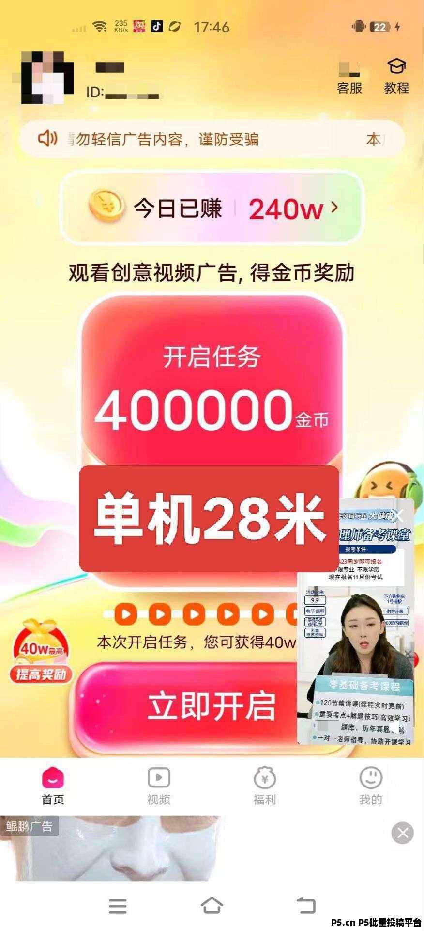 正文 豆派,零撸广告赚,放水中, 不养机收益高 C102030000102 V作者 /2025-10-20 15:56:48/67阅读 1020 豌豆派,零撸广告赚,安卓苹果双端 不养机保底收益高,单机每天10-50+浏顶包50000金币=0.5米,放水补贴,水特别大,满1米起提 秒到账!需要更多项目加我QQ:971422927推广无线代收益,有团队可开团,浏览器扫码