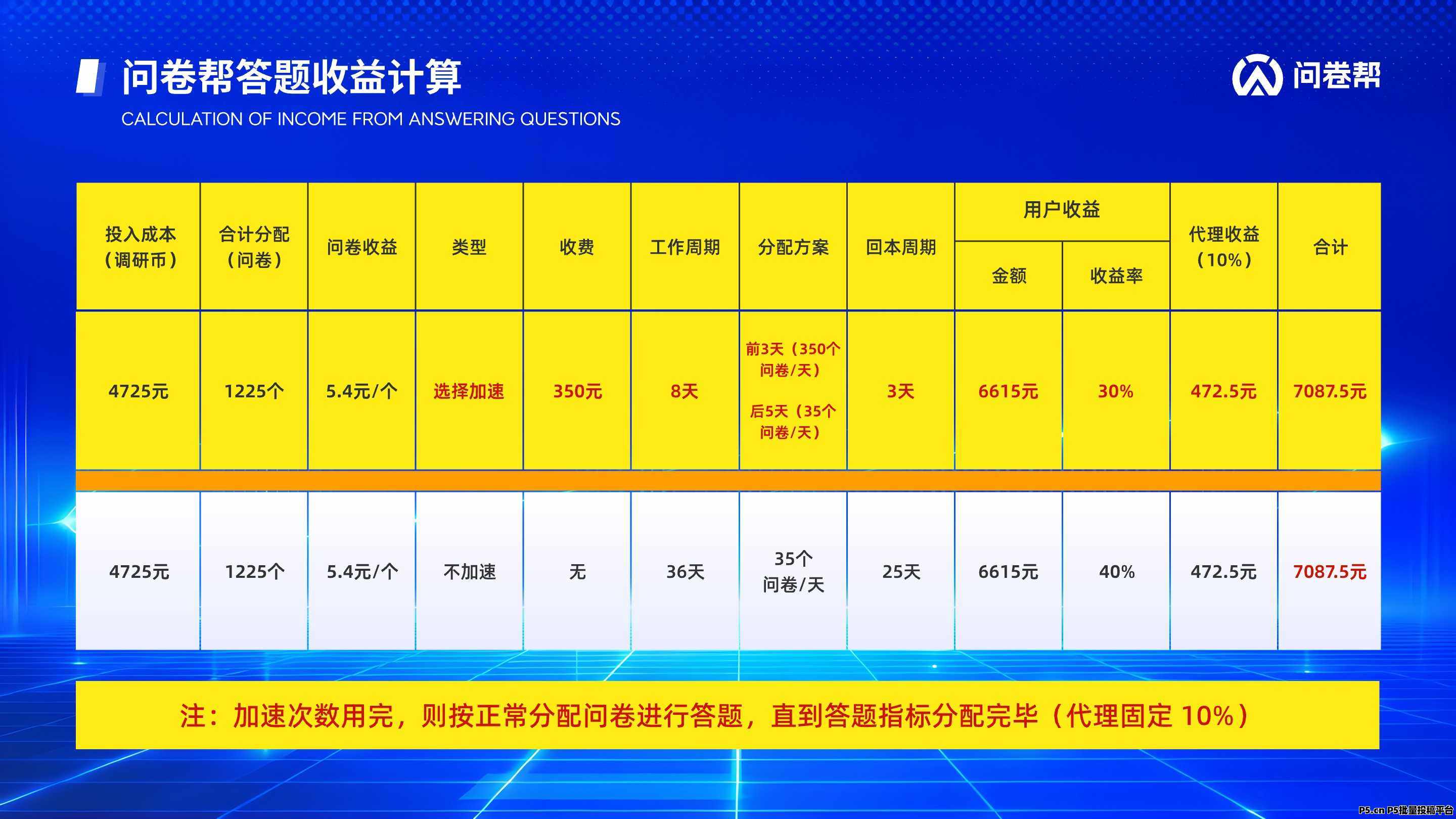 【问卷帮】:建议起始投入5040起 3天回本见收益 项目包周期8天结束,结束后可继续购入 利润40%