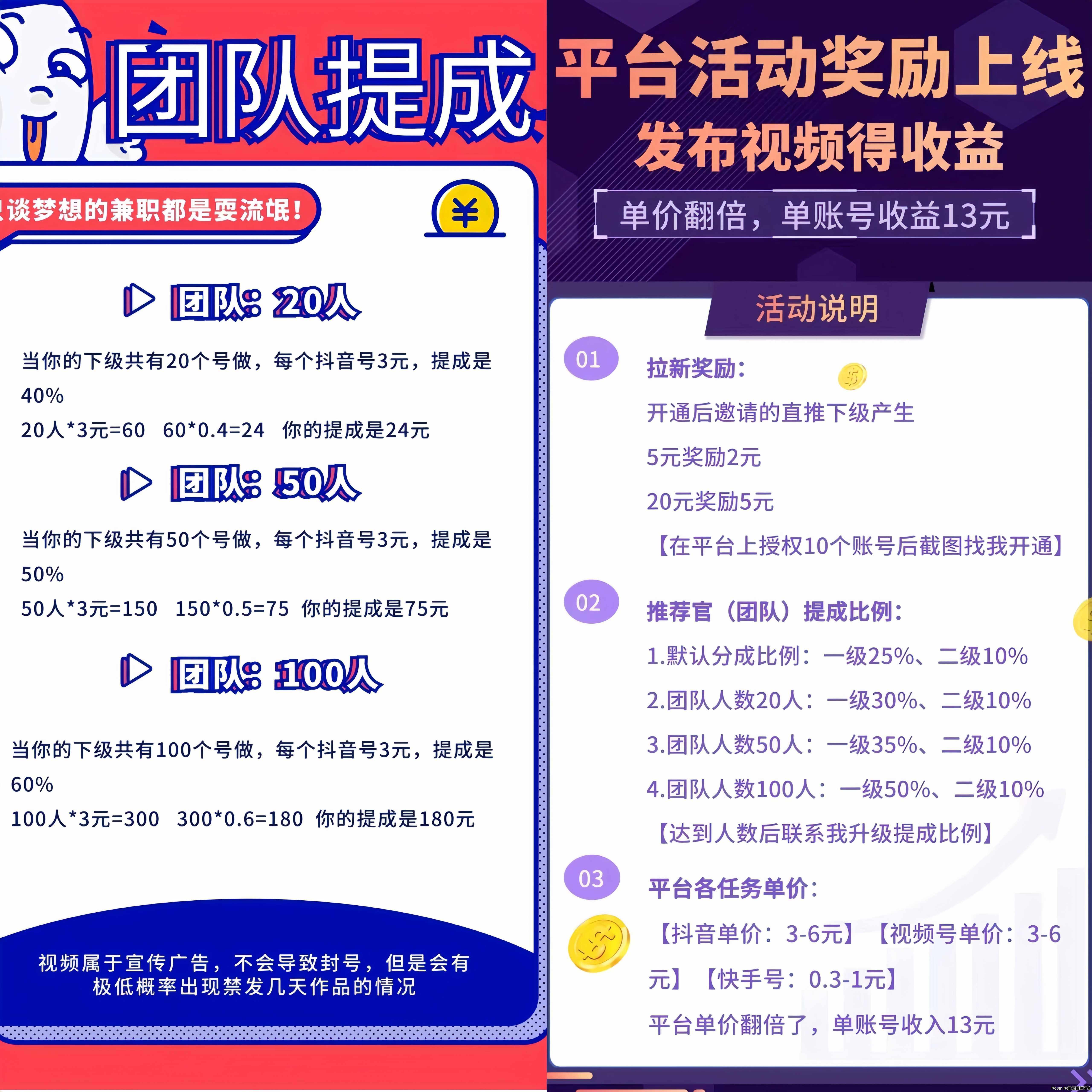 发布视频佣金介绍↓