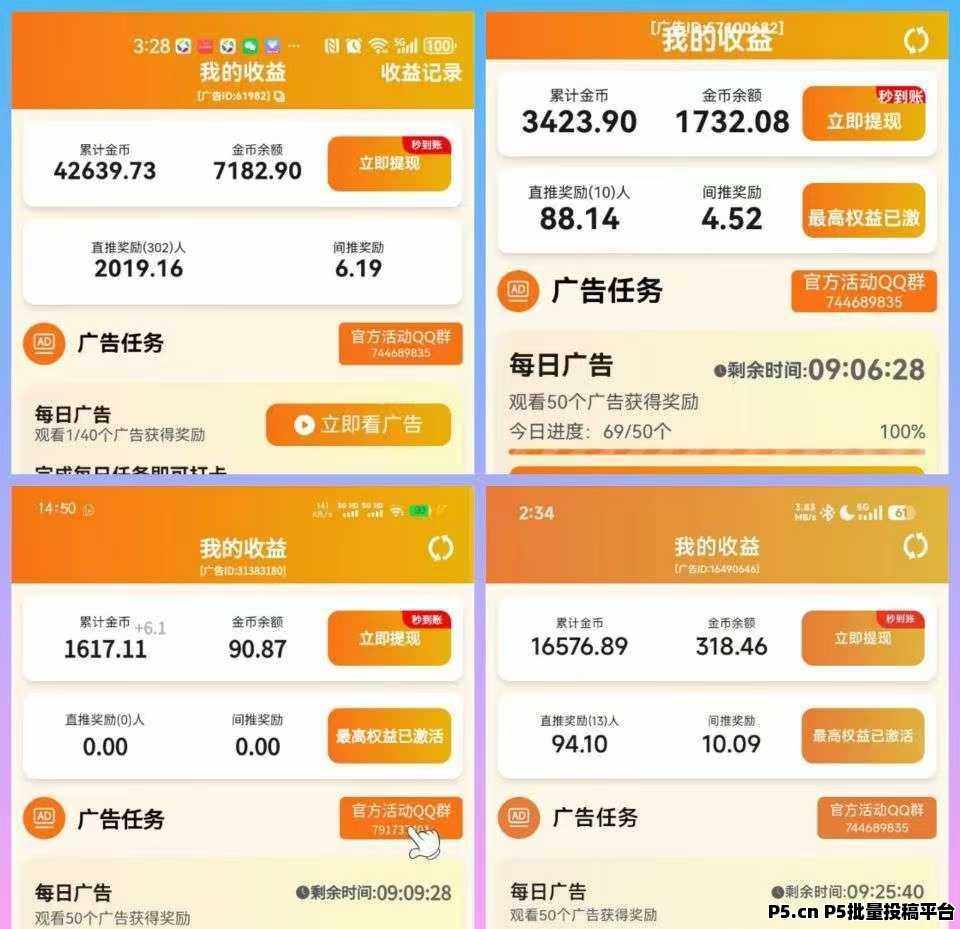 正文 新出水墨年华看广告新火爆 C102030000102 V作者 /2025-12-12 21:11:06/35阅读 1212 〖水墨年华〗新首码看广有保底+顶包2米+拉新奖励公司背景: 滴选公司出品直接看广告得金币10-200金币100=1元有保底0.2玩法+签到0.3元即可提现《推广收益》拉新奖励2元一人一级10%二级5%