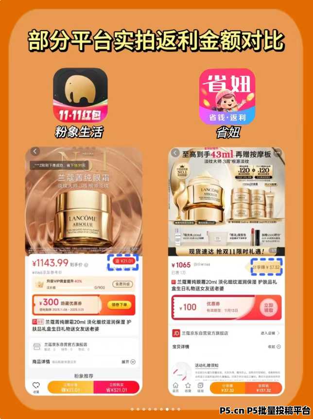 一、返利力度&会员门槛:粉象花钱买高返,省妞免费直接拉满