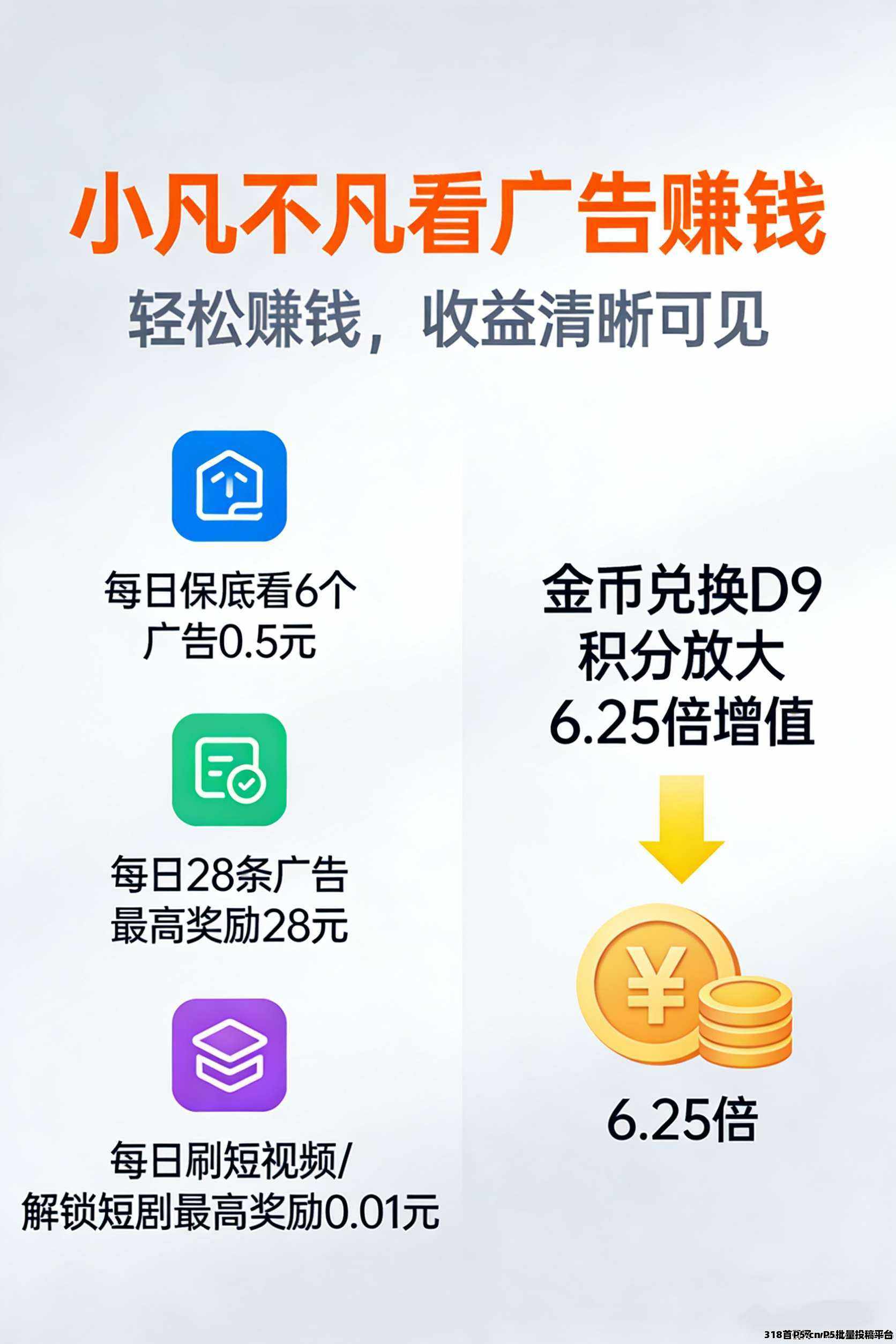 免费注册领福利,做任务、邀好友赚金币/积分,兑换D9积分放大增值,等级越高奖励越多!每天花10-20分钟,平凡日常就能赚不凡收益,赶紧下载APP开启赚钱之旅吧~