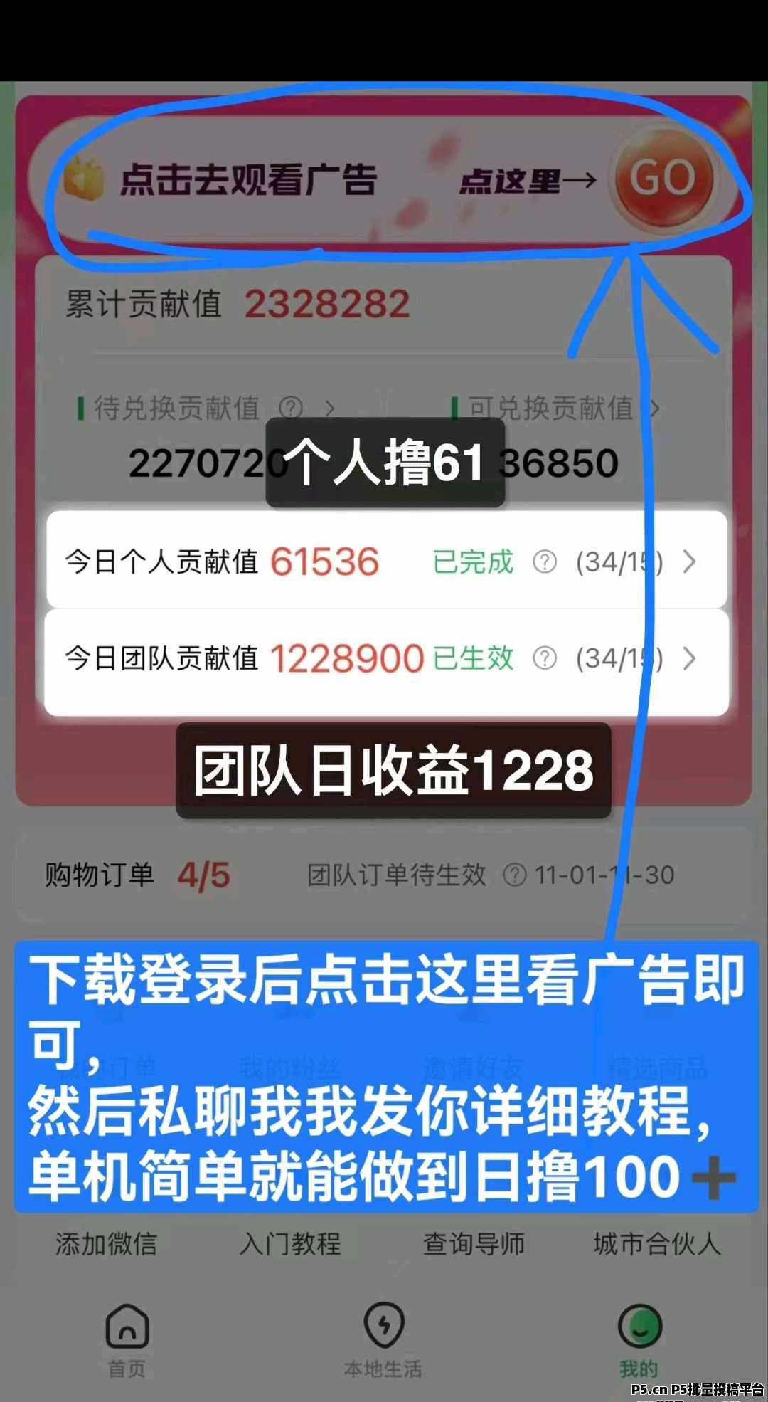 1000贡献值=1元 一部手机一天能看15-60个广告 ——获得几万贡献值