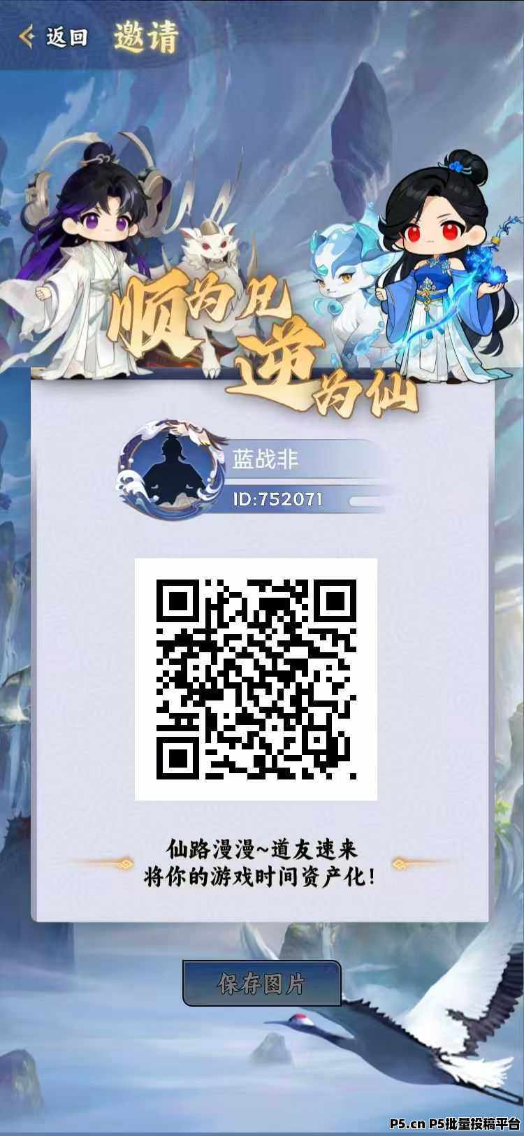 正文 造化仙缘,首码刚出,零撸修仙 机你太美0002612 V作者 /2026-01-05 11:22:54/159阅读 0105 【造化仙缘】首码刚出一秒,修仙类手游。1.零撸玩法:凡人每日看5个广告得5个灵石,10灵石=1仙玉,1仙玉=1.5米,坊市出售,价格逐渐上涨2.玩法教程:先看广修炼10天,把自己提升到练气期修士,后续每天看广得10灵石。3.邀请奖励:下级到达凡人中级为有效,看4天广即可,有效直推10%,间推5%【总结】零撸就好,别花米去开VIP之类的,据小编了解,有的店长甚至可以3折拿卡,纯纯割韭菜,苦修赚米才是王道,切莫花米成为元婴老祖,宗门被灭得不偿失~