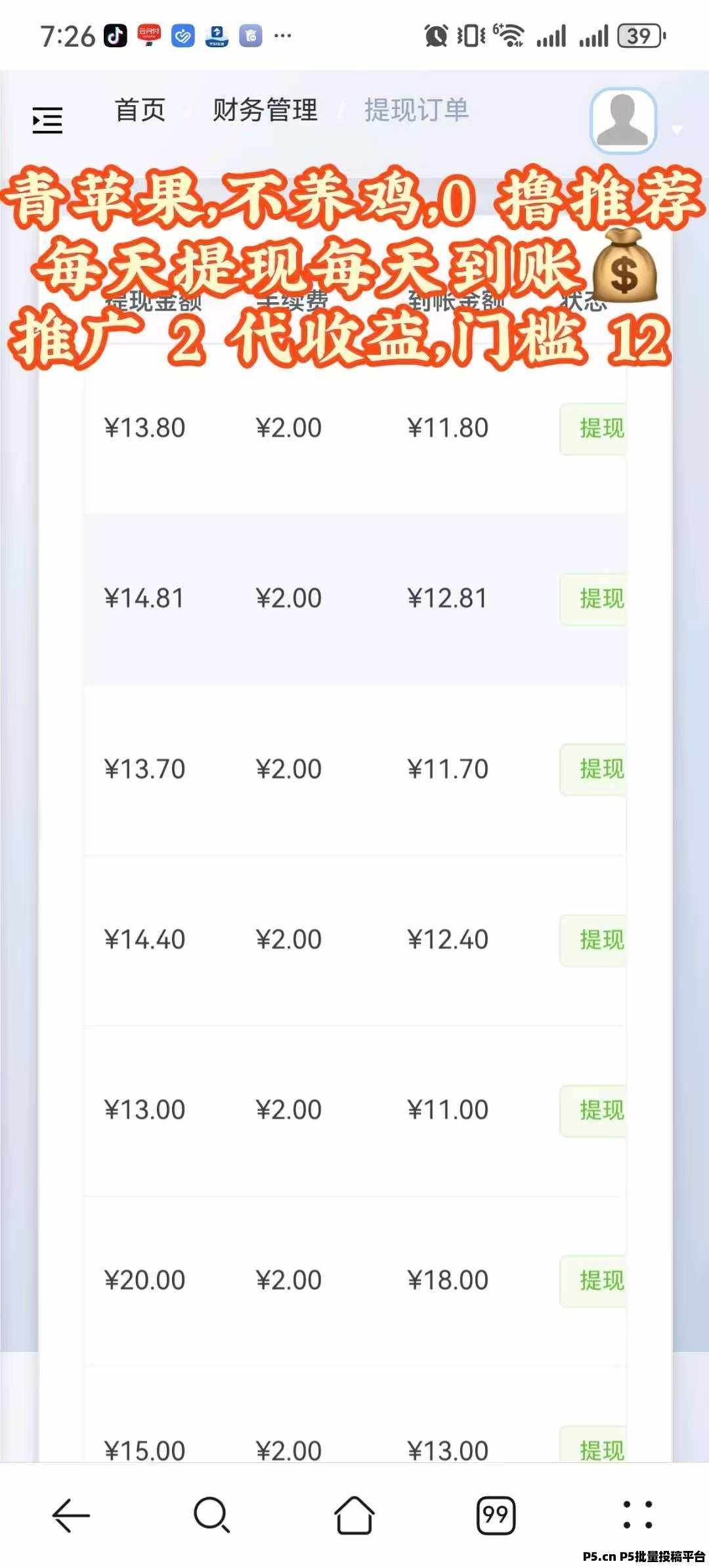 首码上线青苹果,这是一款无需养机的简单看广告项目!已亲测提现到账!