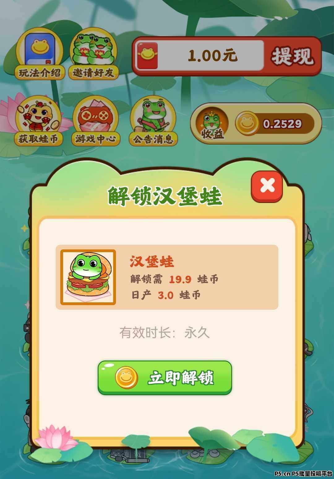 正文 玩福养蛙蛙也能赚米,零撸产币攻略 无形箭0002506 V作者 /2026-01-13 21:10:41/30阅读 0113 福养蛙蛙,零撸复投平台,保底收益高,拉新奖励拉满,邀请日入百米。1蛙币=1米零撸玩法:1、每天领1蛙币2、每次完成1个任务奖0.5蛙币3、邀请直推30%,间推20%蛙币复投模式,5元起提致富宝邀请码 134169手动填写邀请码