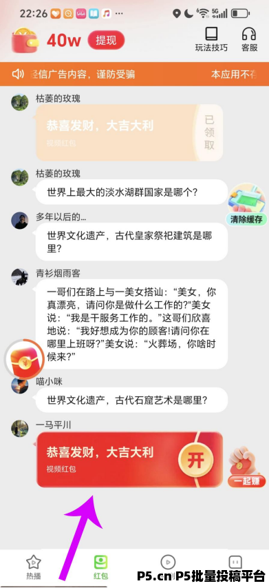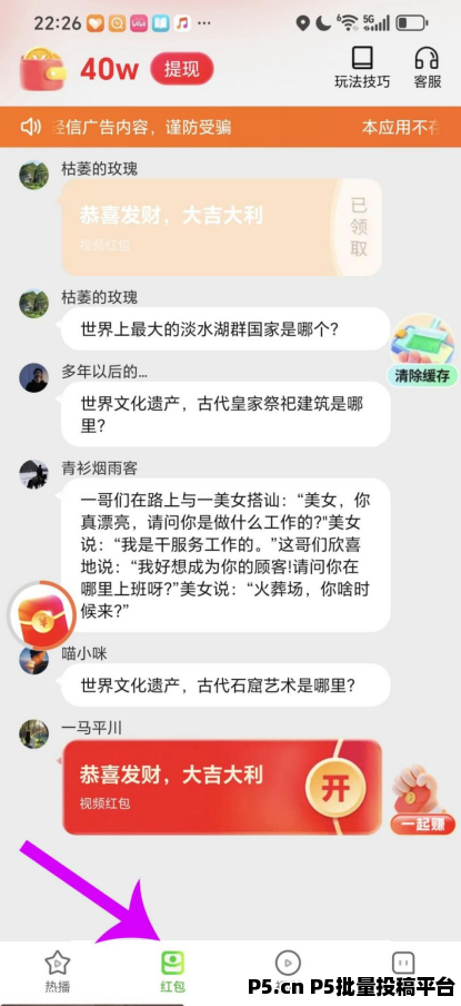 第四步:点击底部的“红包”,然后开始挣钱!