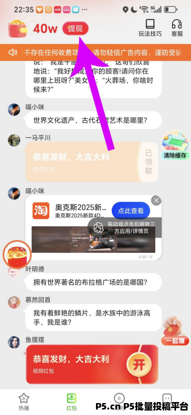 第五步:点消息窗口弹出来的红包,开始看广告。