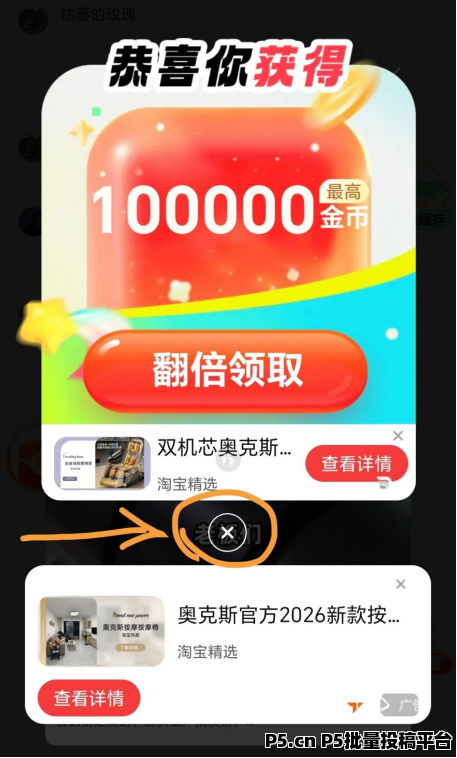 注意事项:如果领红包的时候弹出“翻倍领取”,请关掉,不然你要多看好几个广告,所以,切记看到就关掉。
