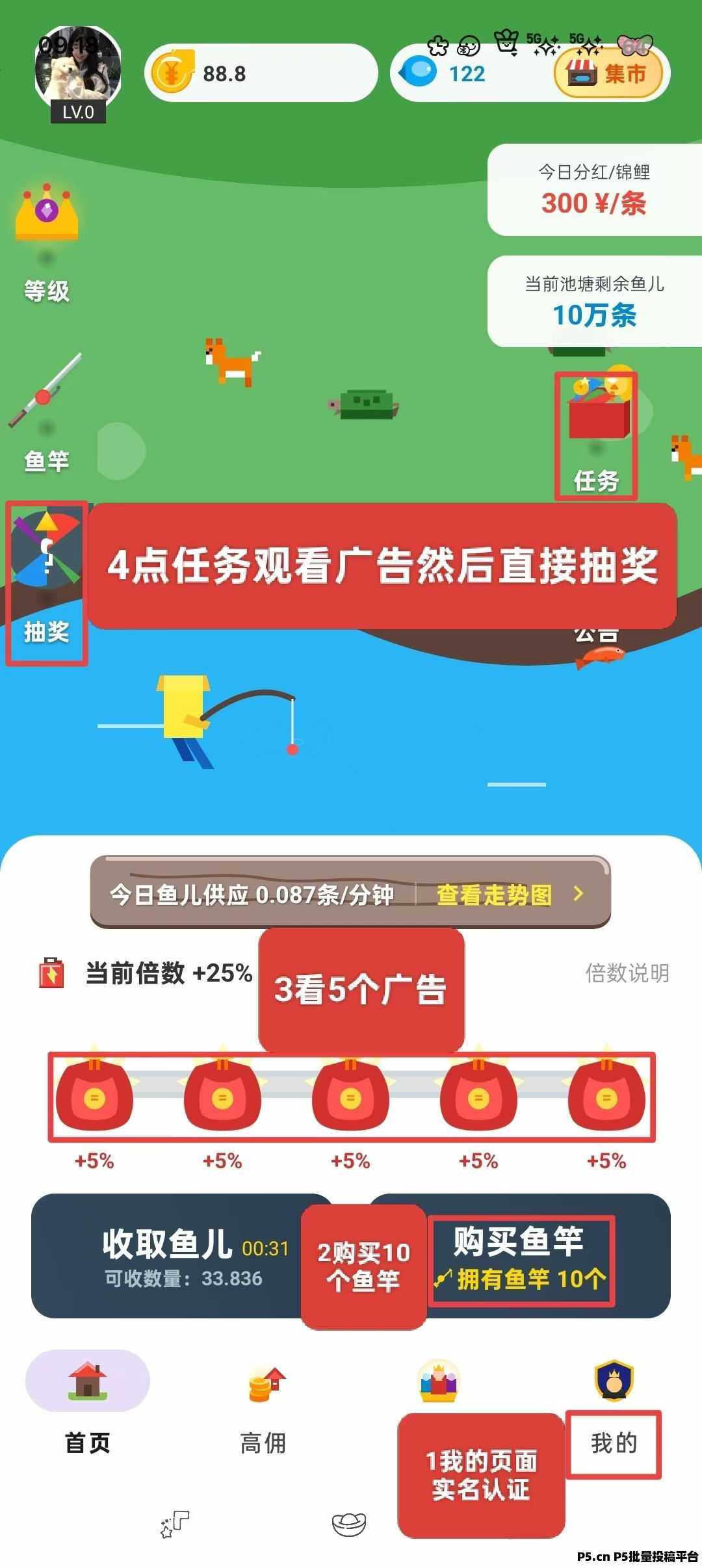 正文 鱼塘首码零撸,每天签到,随时提现,稳定到账 白玉良0002858 V作者 /2026-01-21 15:48:57/126阅读 0121 【鱼塘】①首先微信扫码注册石明②然后用送的3000金币买10个鱼竿,③看5个广告,加速25%④点任务观看广告然后抽奖运气好直接300米一天⑤我的页面红包提现,提现0.2元就是有效会员了然后每天产的金币不要兑换红包,兑换金币,用金币兑换鱼竿,10天后就有20鱼竿了。每天4.5元,然后每天提现。复投鱼竿90天每天160元,这个就没必要了,先变现为主。