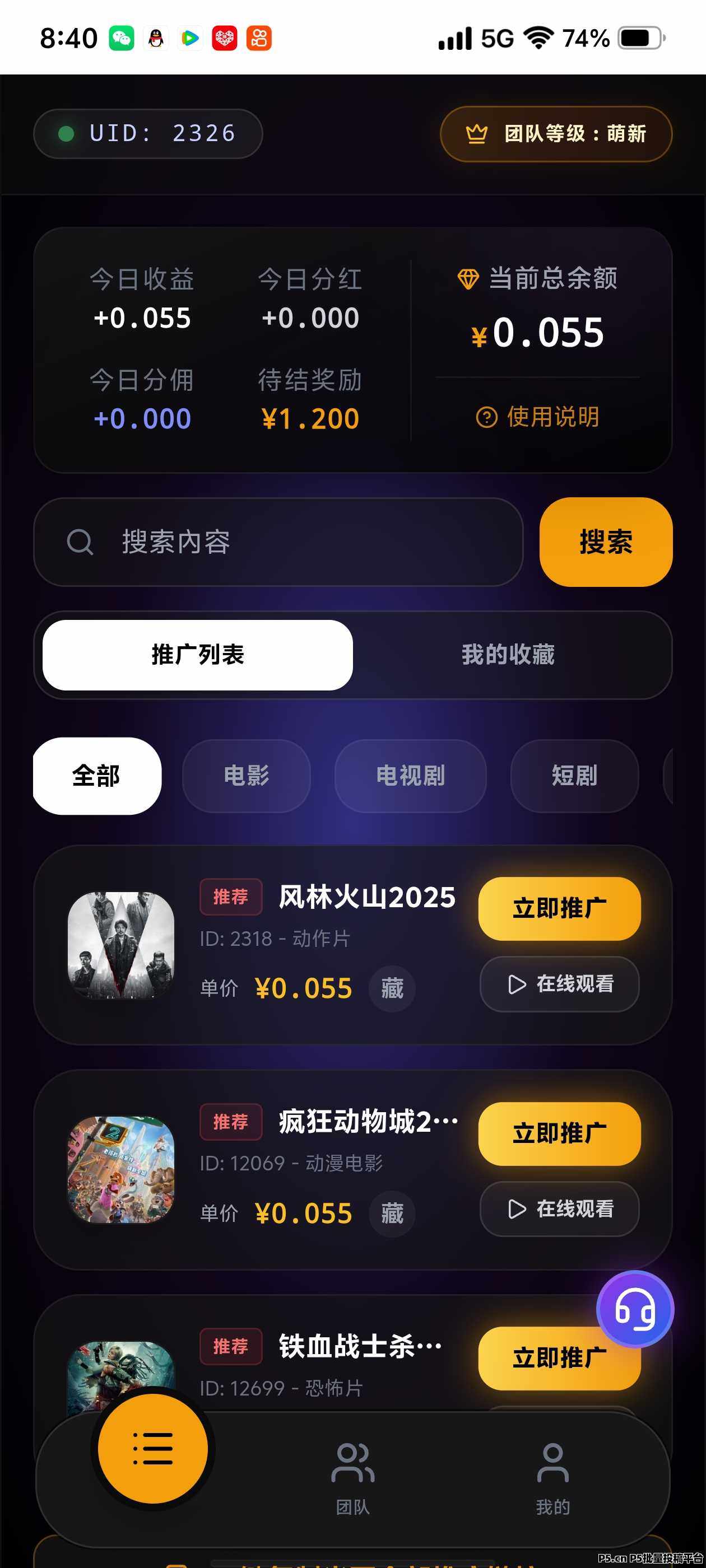 正文 极光影视,看电影撸米 喔喔喔0003639 V作者 /2026-01-25 22:15:37/104阅读 0125 极光影视原班人马打造的新平台。盈月影视。所有VIP电影/电视剧免费看,本人亲测:高清/不卡顿/不弹广告。自己用来看电影,也不错。分享给别人看,还能挣钱,满5元。就能缇现。驻测地址:盈月影视推广 招收代理,推广佣金高!如下图,分享电影地址到朋友圈,或微信群。别人点开地址就有钱,一个点击0.055元 100点击5.5元,只要你不懒,单干一天几十块。