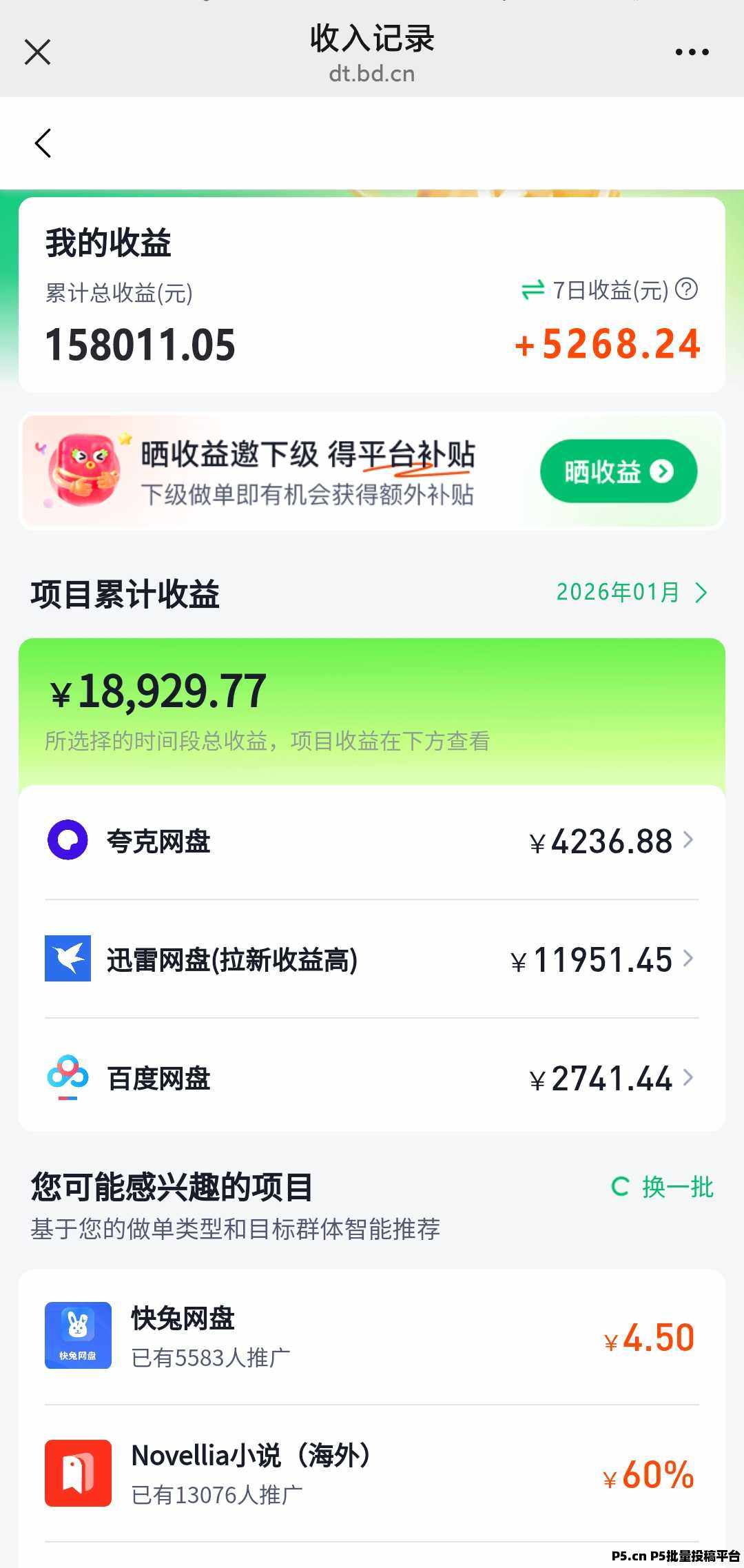 很多人可能听过“网盘拉新”这个项目,觉得是个小项目,能赚几个?我给大家看看,我自己的成绩,如下: