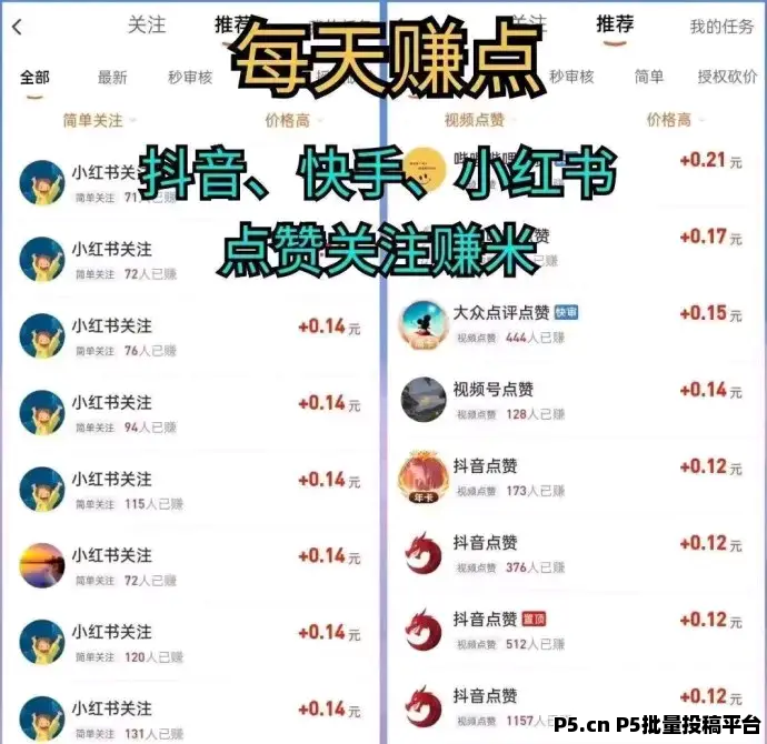 [每天赚点] 9年老平台,每天重复操作,累积量大,日收入通常可达100圆以上,小红书无限点赞,关注,这款平台每天更新上百款、微信/支付宝提现当天到没有撸的上车,点赞关注投票超多简单零撸适合宝妈学生拿手好项目