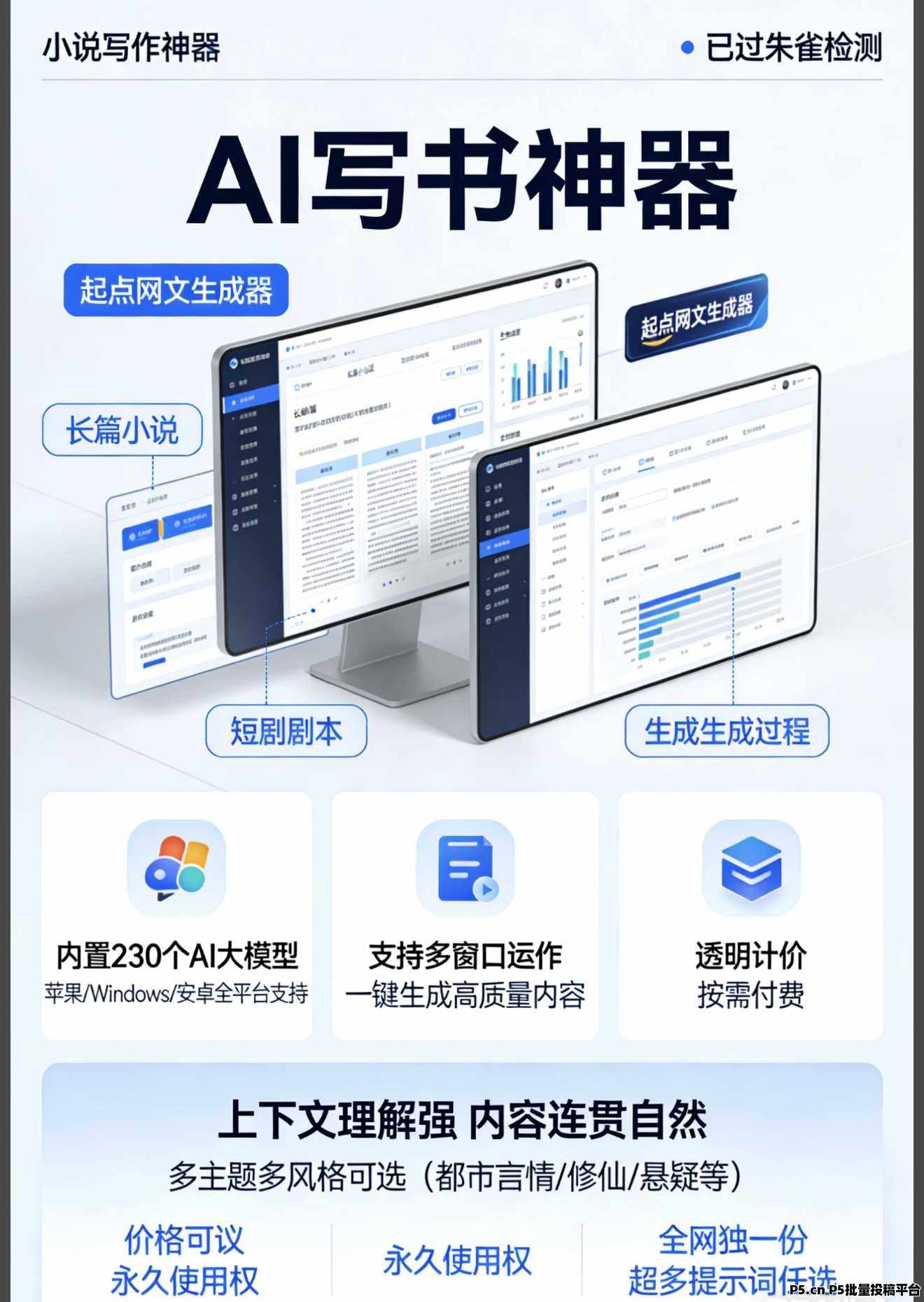 正文 AI生成小说,一键上传番茄七猫躺赚 HYH888888000243 V作者 /2026-03-08 21:15:45/971阅读 0308 AI生成小说,一键上传番茄七猫躺赚月过W无需想法,不用操作。一键生成完整小说,直接发布起点、番茄、七猫、书旗等平台。