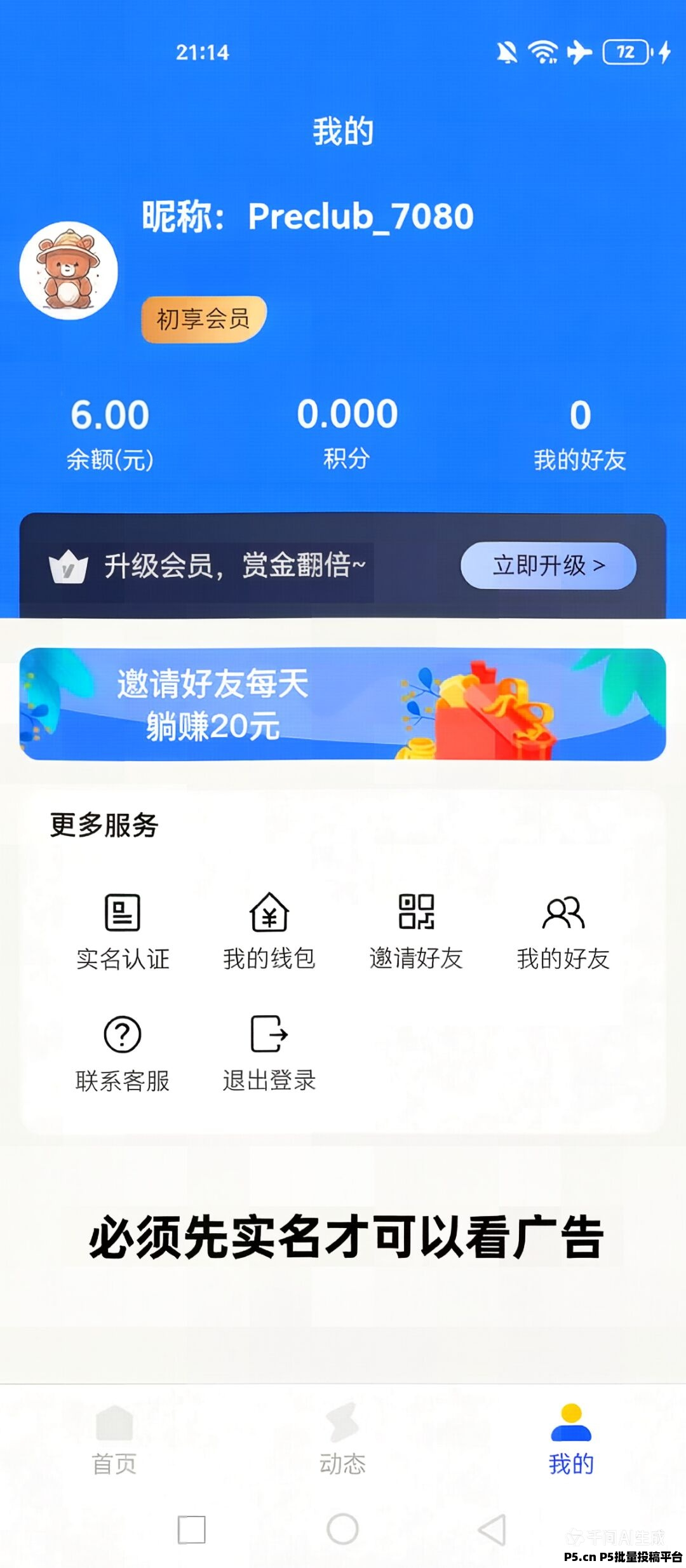 正文 优享汇,零撸广告平台不养机 土豆gg1230003742 V作者 /2026-03-24 22:06:11/119阅读 0324 优享汇零撸广告平台 不养机每天10个广告赚2-6元0.3起提现,秒到支付宝直推30%,间推20%微信扫码注册每天限量注册1000人必须先实名才可以看广告