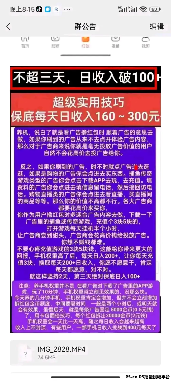 还有养机教程,能极大提高撸包收益,每天花几十分钟撸几十可以了,撸得太狠容易黑机,不要同个广告连续点击互动!不要每个广告都点击互动!