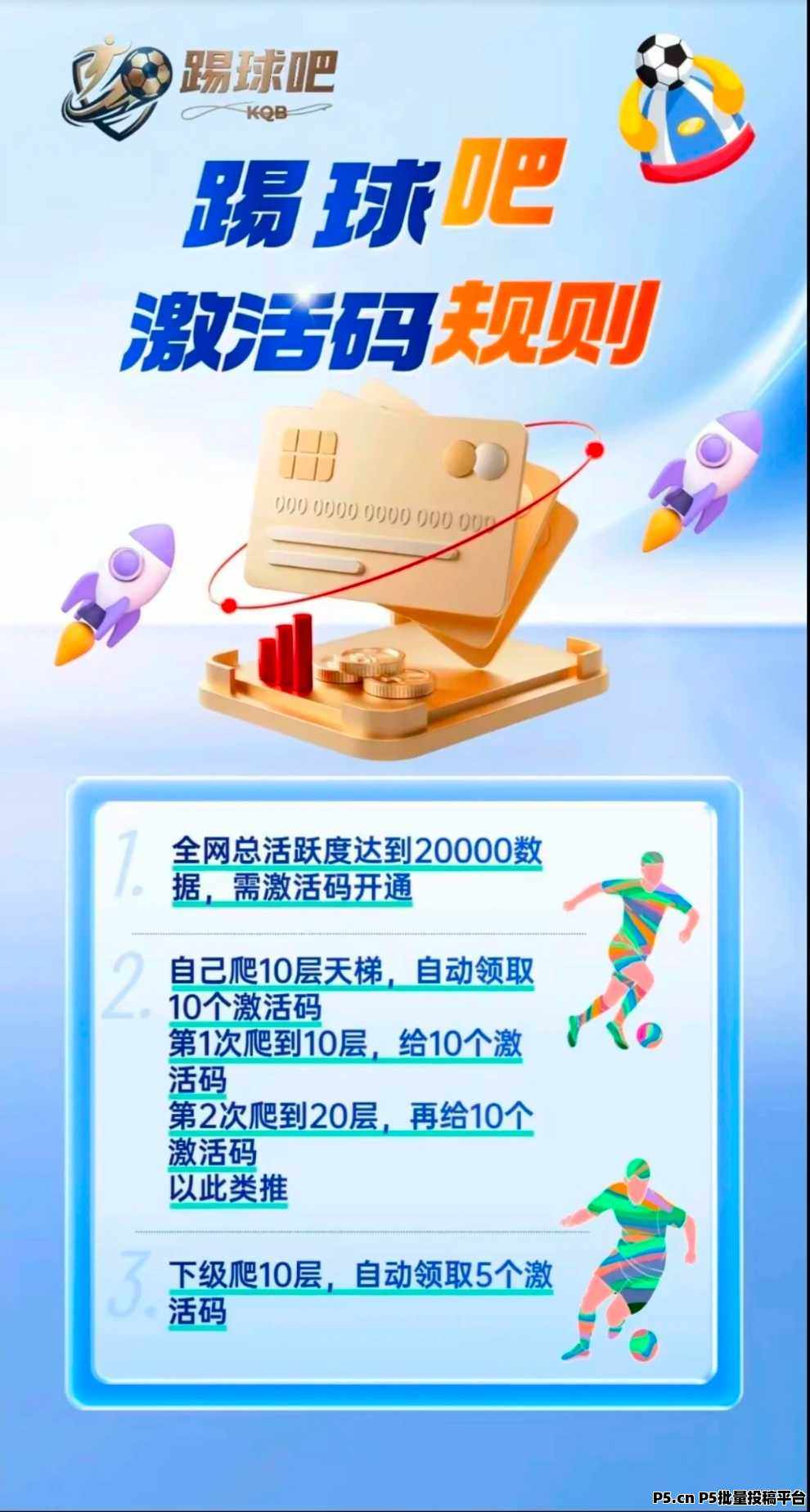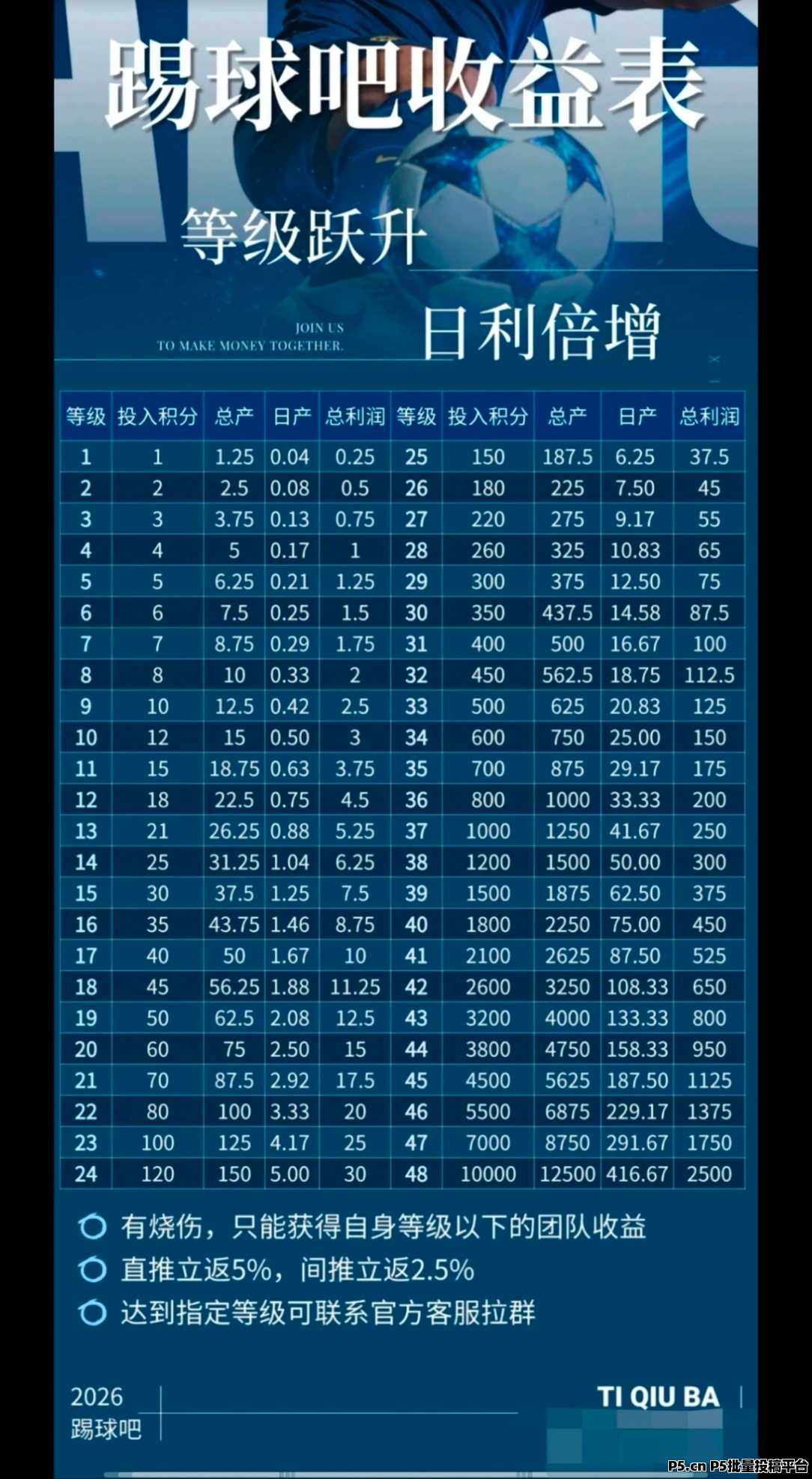 刚出首码【踢球吧】0撸PQ+卷轴模式,注册送10积分,每天看6广告,官方指导价5米一积分,黑市预估7~8米,卖出保留10,无其他限制,无需贡献值,直推收益5%,间推2.5%,一个ip5个号一机一号,先**后签到