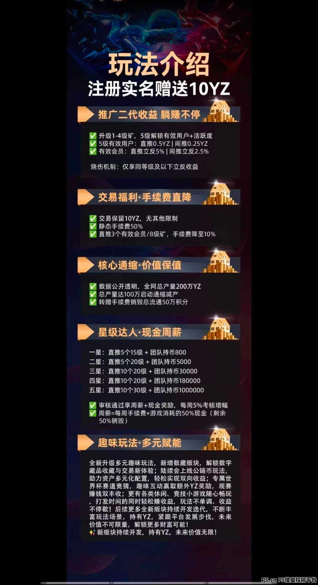 · 全网最高扶持:两代内直接赠送5个币,可直升5级,比别人提前6天到达5级