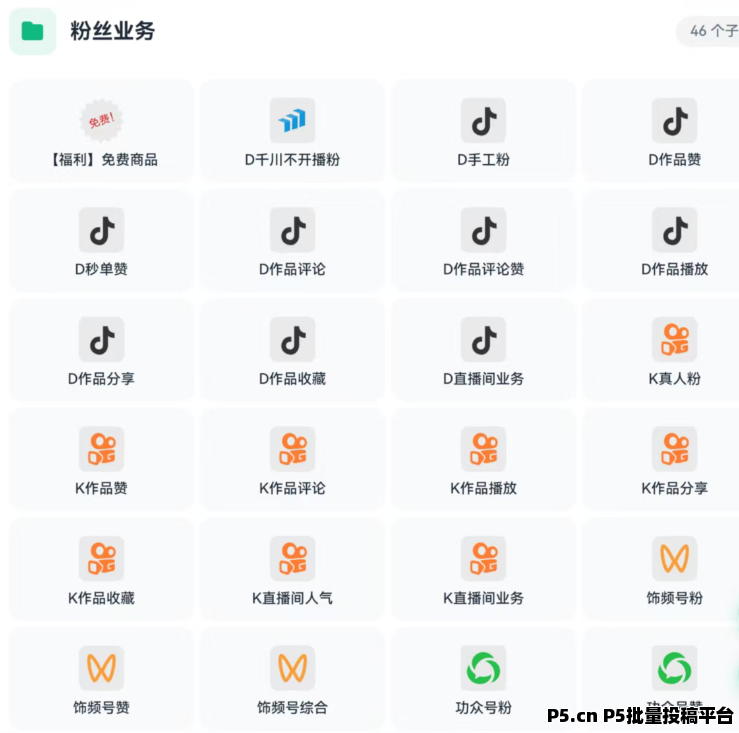 2、粉丝业务(涵盖所有自媒体粉丝业务:几千种)