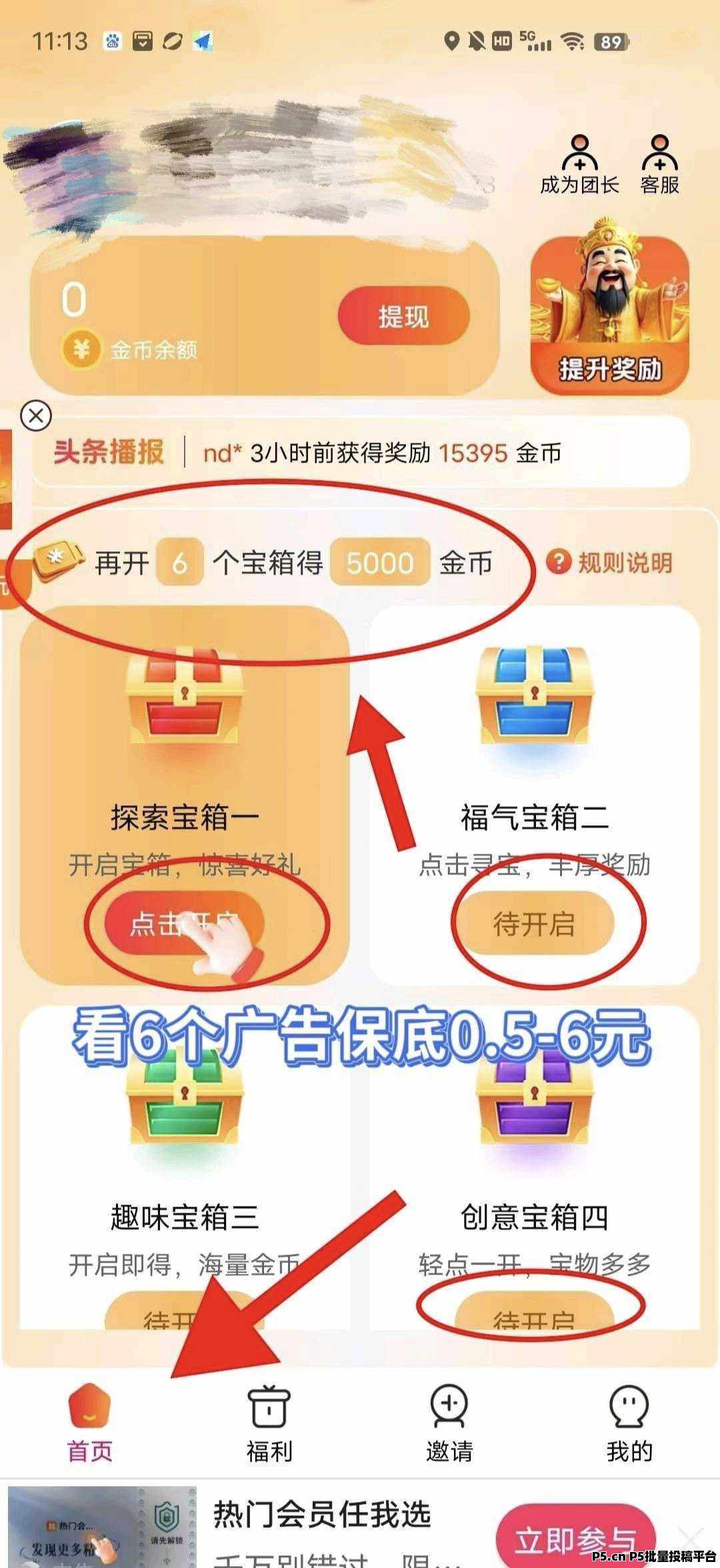 正文 仟宝单机,看广告平台 小成哥哥0002855 V作者 /2026-04-17 11:35:59/109阅读 0417 最稳撸广平台《仟宝》新品上线,简玩模式,点首页那个探索宝箱看六个广保底最低2-6米,六个广告一轮可无限制撸,保底20000金币(2米)/满包60000(6米)四大联盟广告都吃、没上车的兄弟看我空间上车撸起来,下级刚刚反应十分钟不到撸了十一米,真正做到了单机50-100,提示vx登录失败就点手机号登录然后再绑定vx就可以了