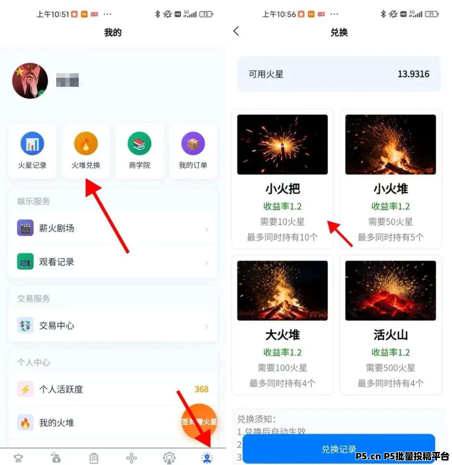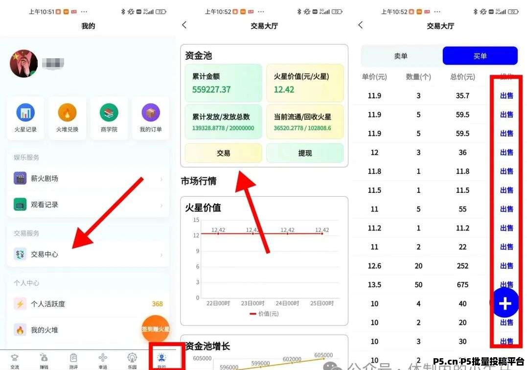 4、之后我们再攒10个去复投一次购买这个小火把,然后这个小伙把我们可以卖产出12个里面的7个,有个几十块钱。满5个以上就能直接去交易市场出售满10个以上可以去平台提现 【同网络下支持4个设备】