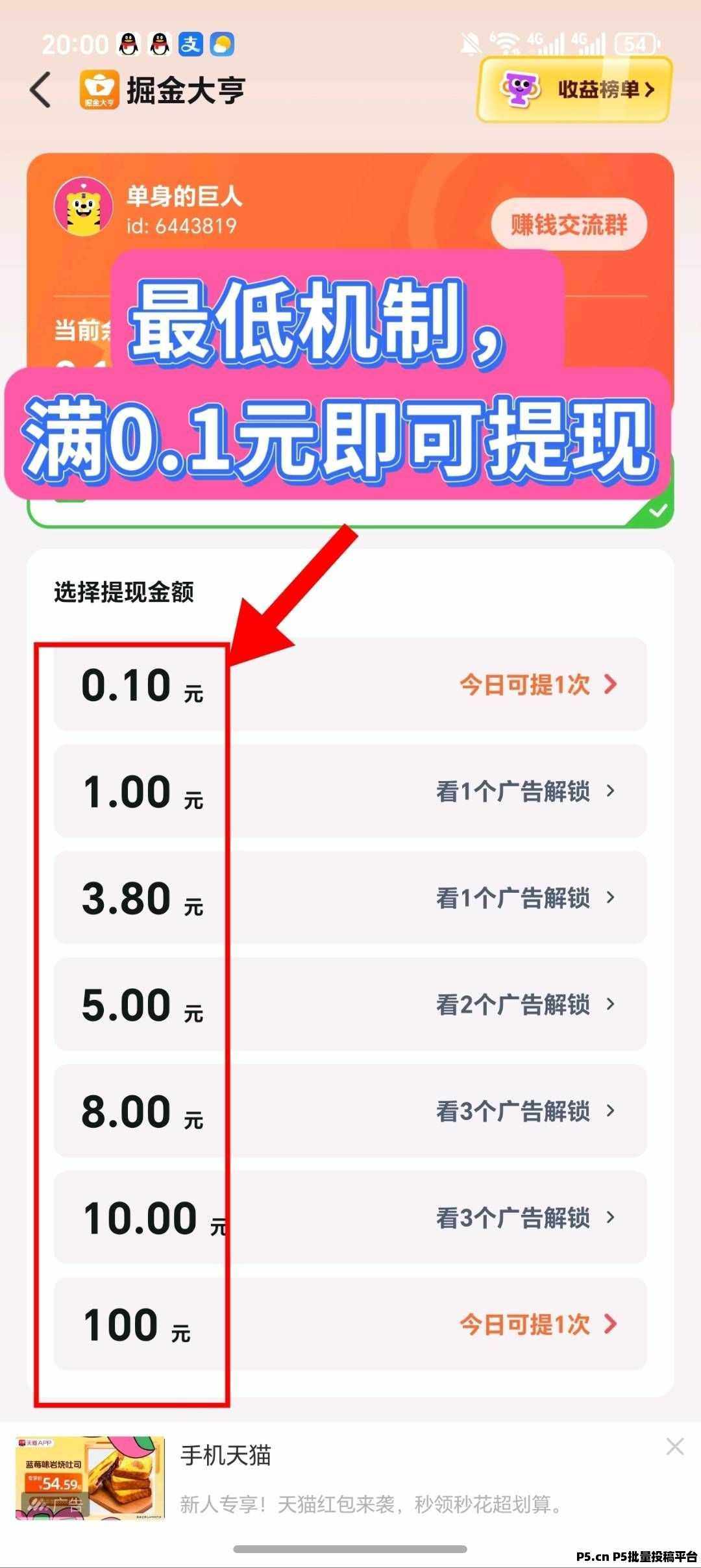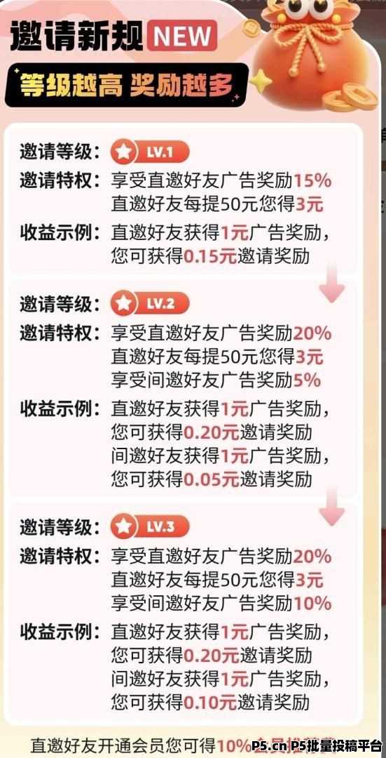 正文 掘金大亨,零撸广告赚,收益高,放水中,新品上线 白小纯00033 V作者 /2026-04-28 11:23:42/62阅读 0428 掘金大亨,零撸广告赚,保底收益高,放水中,新品上线,保底每天5.4 米, 保底 3个区域,0.1 毛钱起提,新人见面礼,额外提3奖励1你1.保底看广告0.1*30个=3元2.保底看广告0.07*20个=1.4元3.保底看广告0.05*20=1元4.50个权重广告0.1-0.6元★邀请码:835313推广收益10-30%**,可开高团