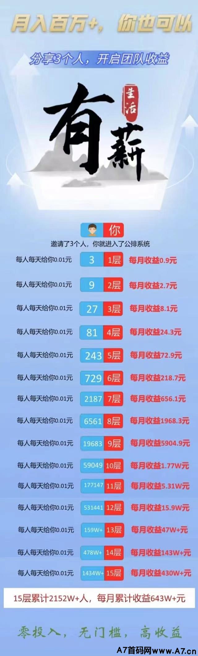 正文 【有薪生活】1.0锁粉阶段,抢占先机,全网公排,一起排线,我们白送你团队 金女士 V评论者 /2022-12-27 23:13:13/2.22 K阅读 1227 【有薪生活】1.0锁粉阶段,抢占先机!全网公排,一起排线,我们白送你团队!全网33公排自动滑落,只需要推荐3个人,你就可以坐等15层2100万人的团队**啦!只要前期肯去努力的推广一下,后期绝对躺着赚!你说你不会带团队、不会推广带新成员,那也没有关系,你就把它当做是发广告一样的在引流平台随意的发一发,就好了!这绝对是2023年月入十万的项目!赶紧注册占位搞起来!微信扫码注册下载!微信扫码注册下载!
