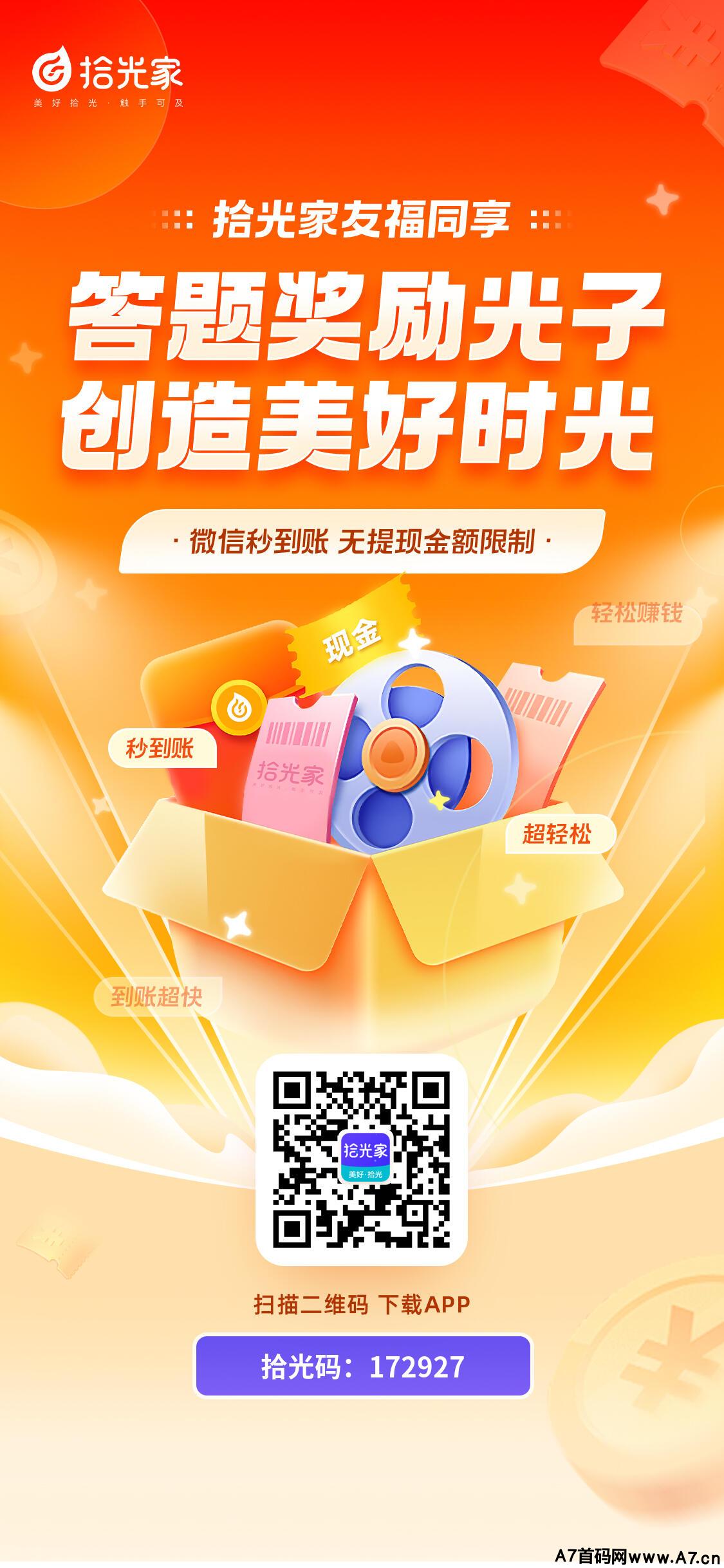 正文 新首码项目,答题赚米 LLL V评论者 /2022-12-31 08:13:59/2.58 K阅读 1231 拾光家看视频广告答题,每日2元提现秒到微信零钱!拾光家是最近在内测的一款看视频广告,回答相应问题赚钱的app!之前一个视频广告1元,由于价格高玩的人太多,目前已经调整为0.1元,后期规则也可能随时会改,没事做做也算个不错的低保项目!邀请码:172927微信扫码下载