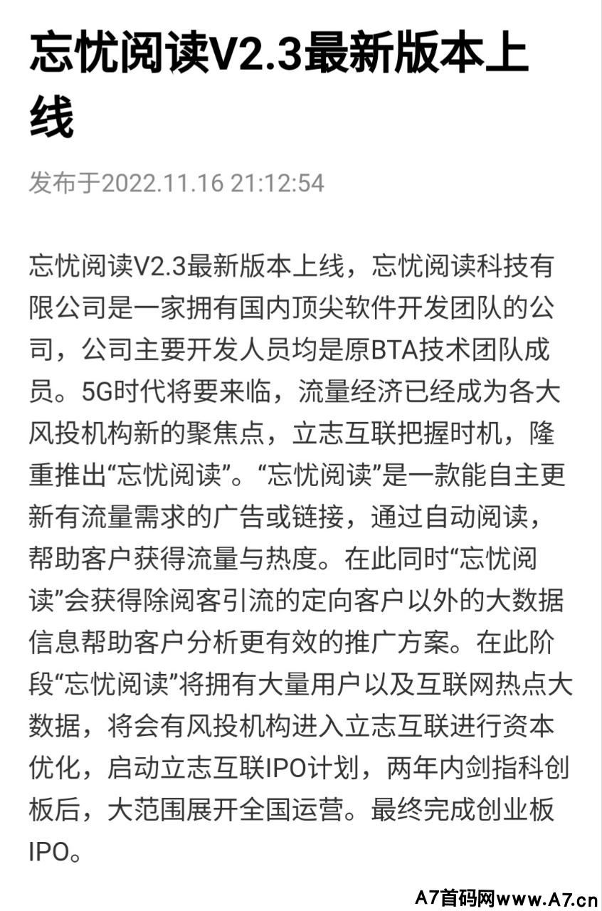 正文 【忘忧阅读】自动浏览新闻广告,注册送自动赚米权限 金女士 V评论者 /2023-01-05 09:28:37/3.56 K阅读 0105 【忘忧阅读】首码刚出一秒!自动浏览新闻广告赚钱!新人注册送自动赚钱权限,每天赚30元左右!邀请一级好友赚68元,二级好友赚34元!三级好友赚17元,还有好友自动浏览分润!注册了一天随便邀请两个好友就能赚100元左右!满100元提现秒到账!注册需要手动填写邀请码,邀请码:JJRMYU